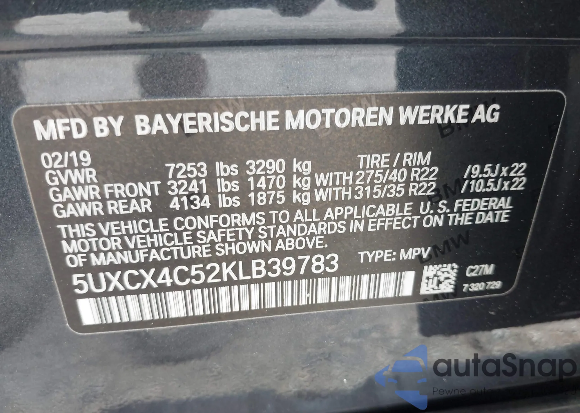 • VIN 5UXCX4C52KLB39783