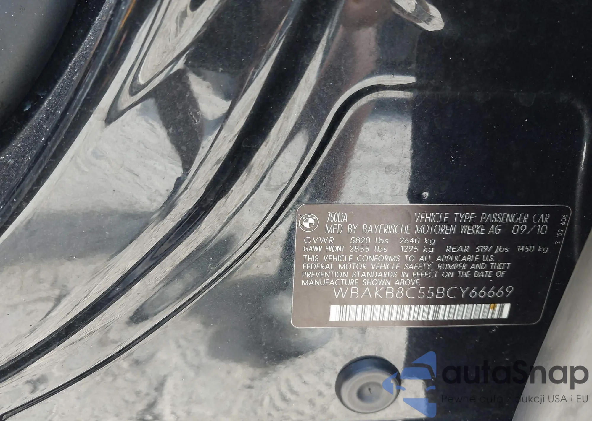 2011 BMW 750Li from USA, damaged, VIN WBAKB8C55BCY66669