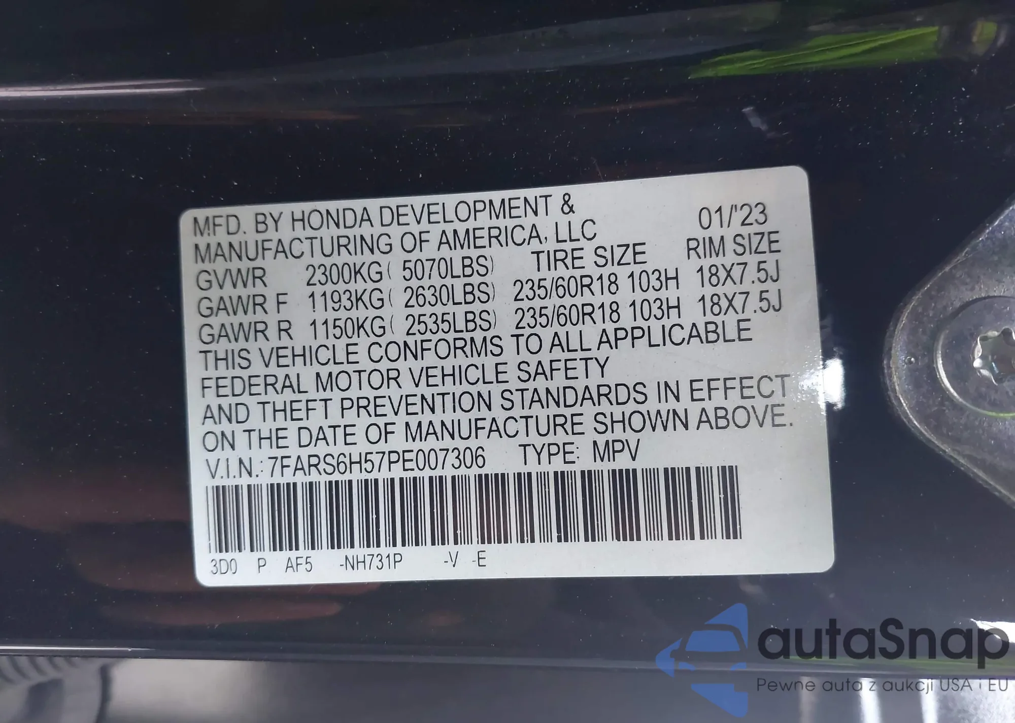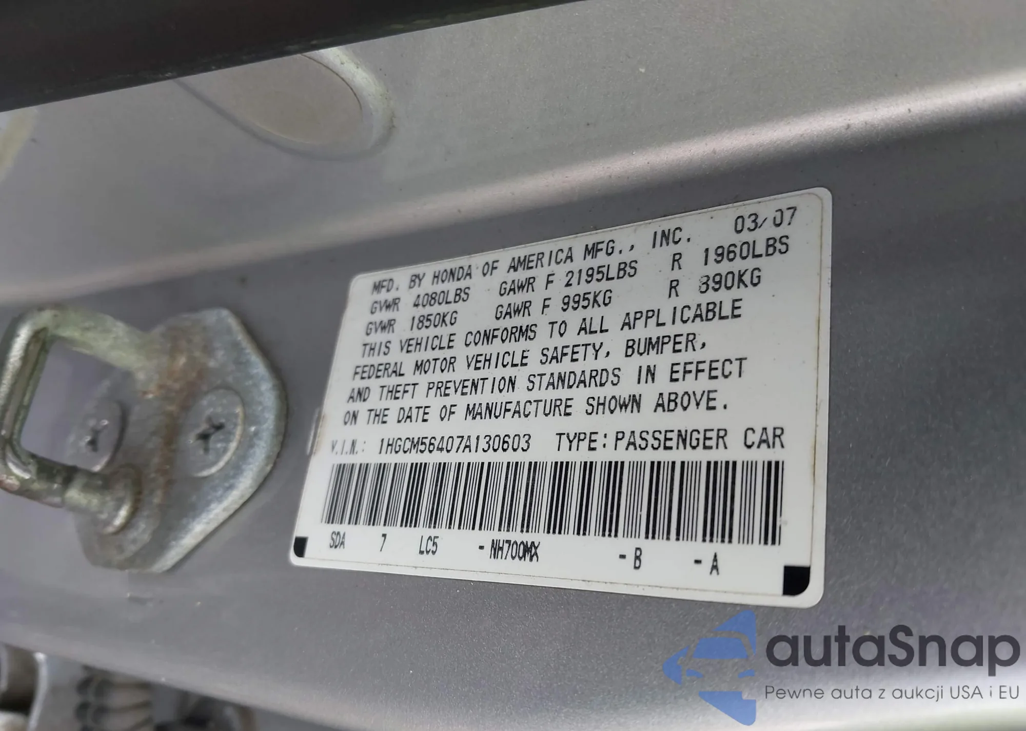 LOT: 42614486 VIN: 1HGCM56407A130603