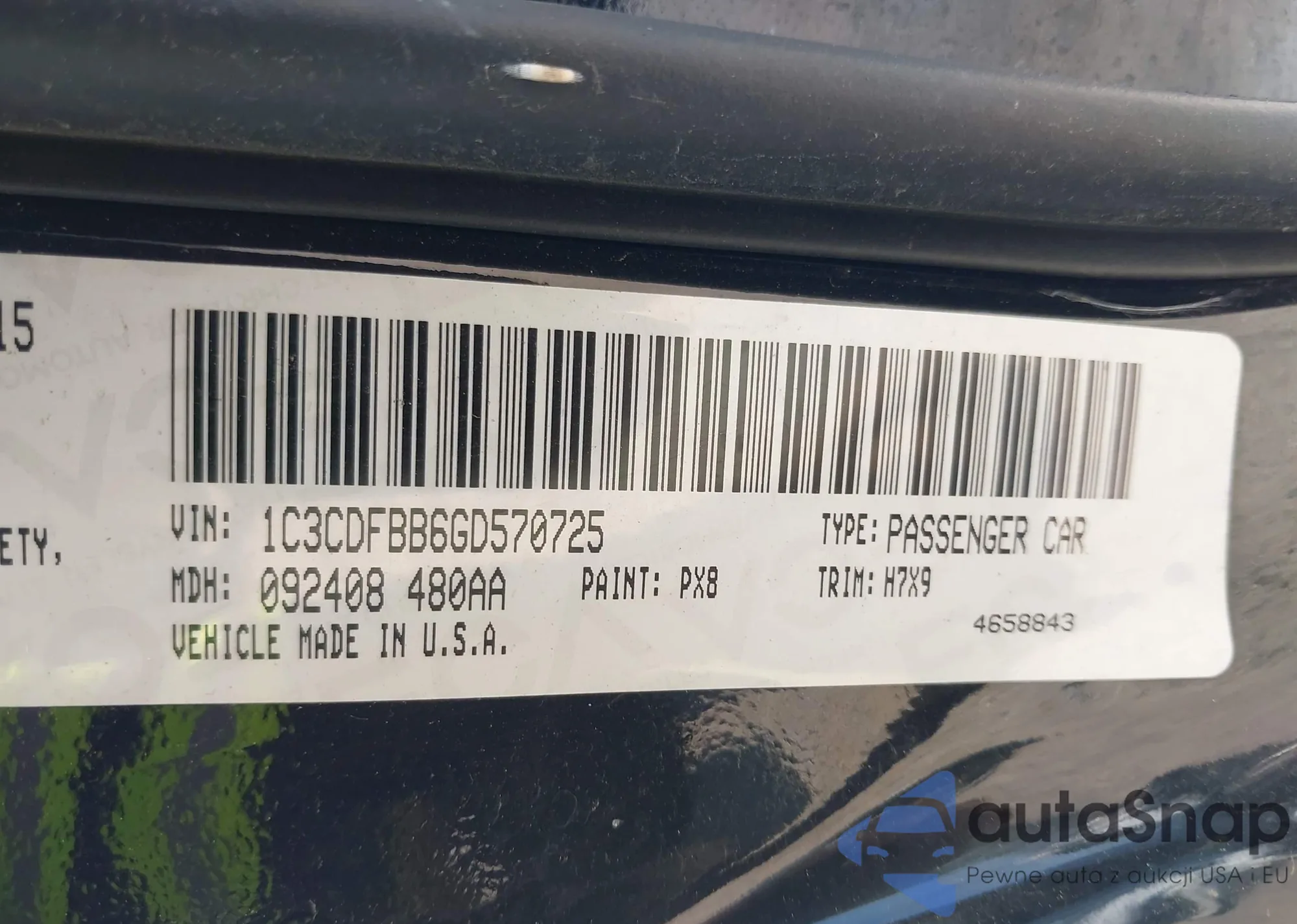 • VIN 1C3CDFBB6GD570725
