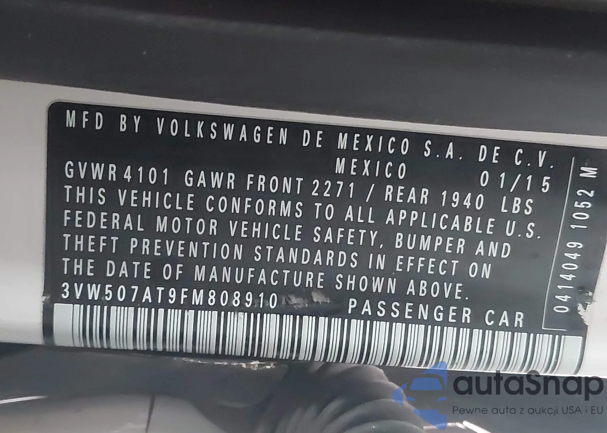 • VIN 3VW507AT9FM808910