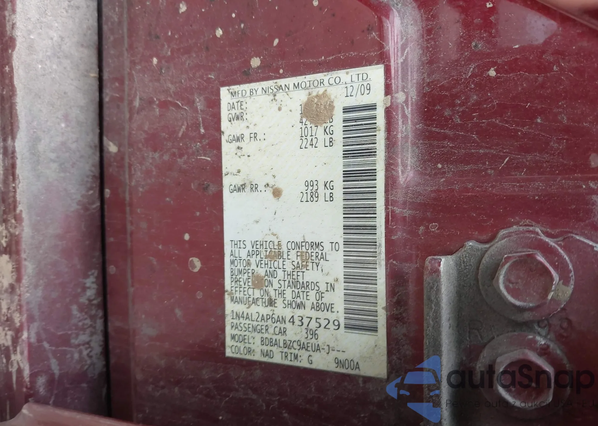 LOT: 42188997 VIN: WBA73AK01M7H65272