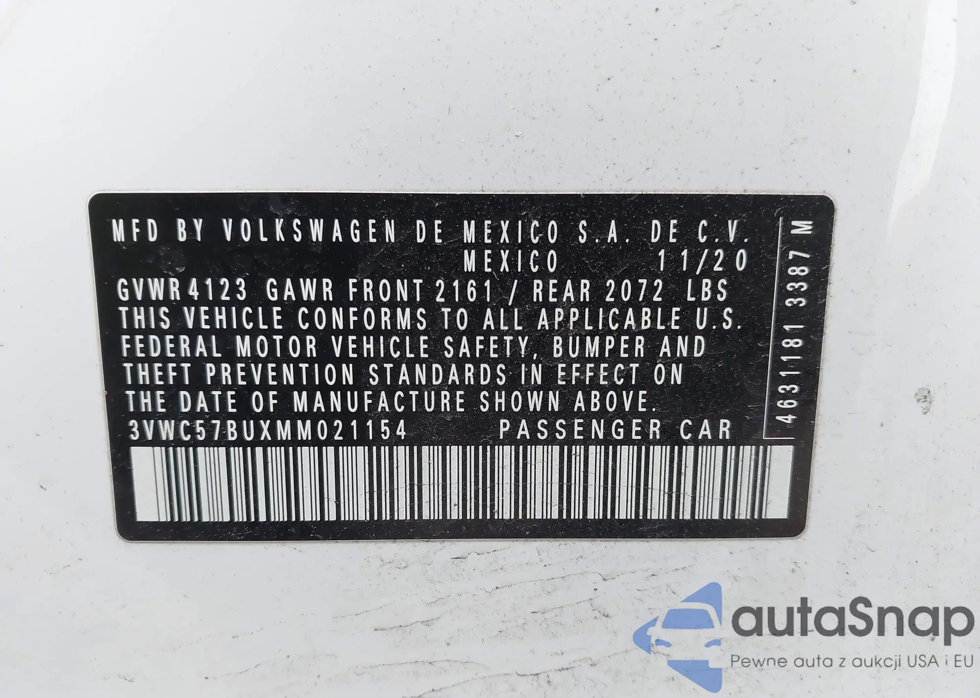 • VIN 3VWC57BUXMM021154