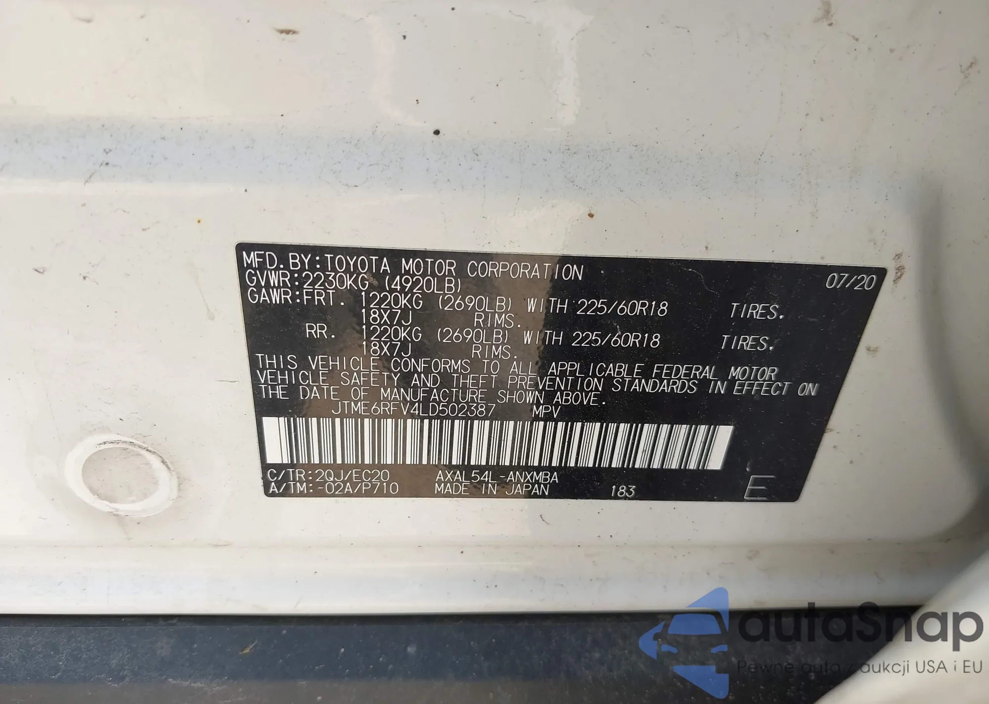 LOT: 42564059 VIN: JTME6RFV4LD502387