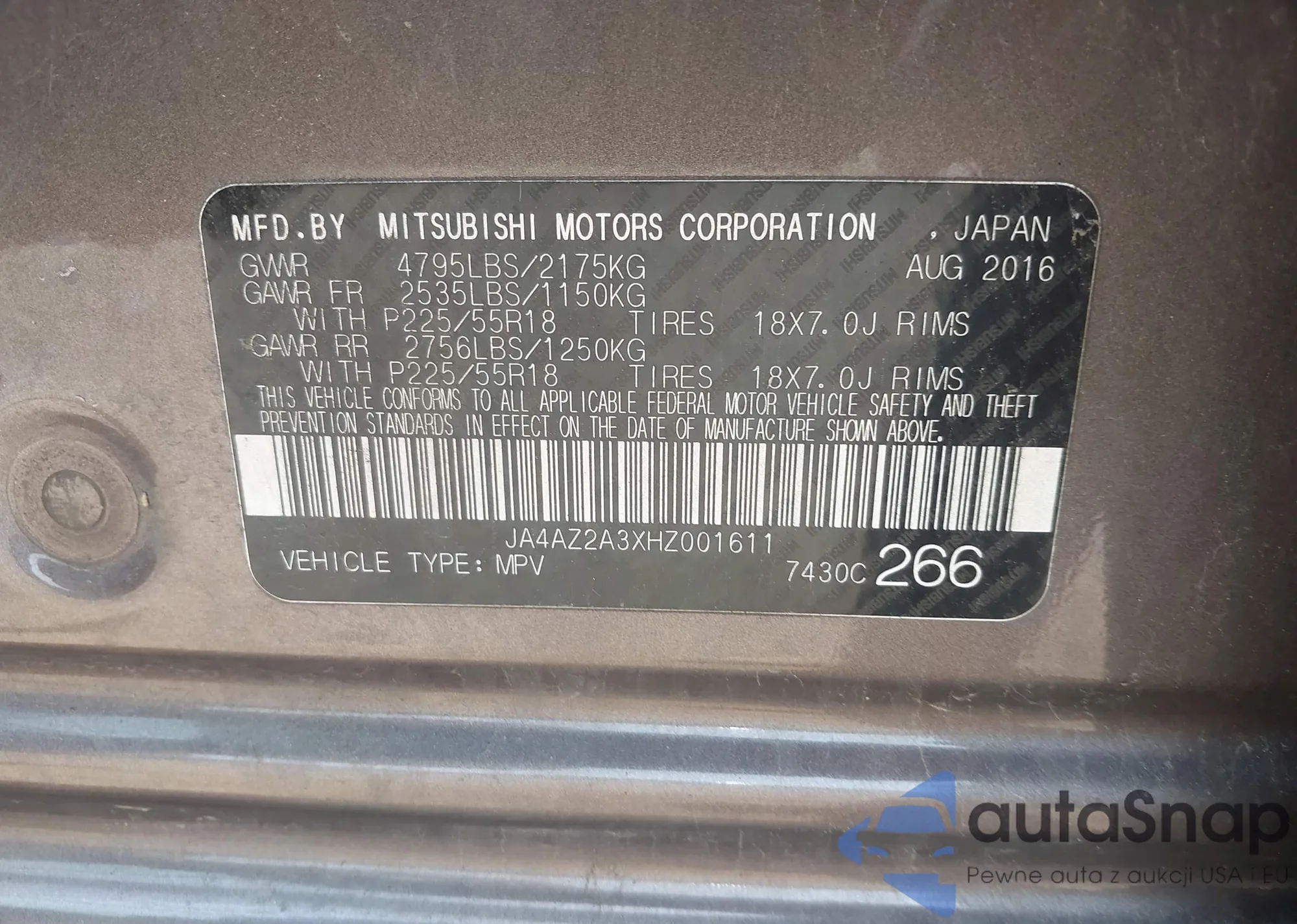 • VIN JA4AZ2A3XHZ001611