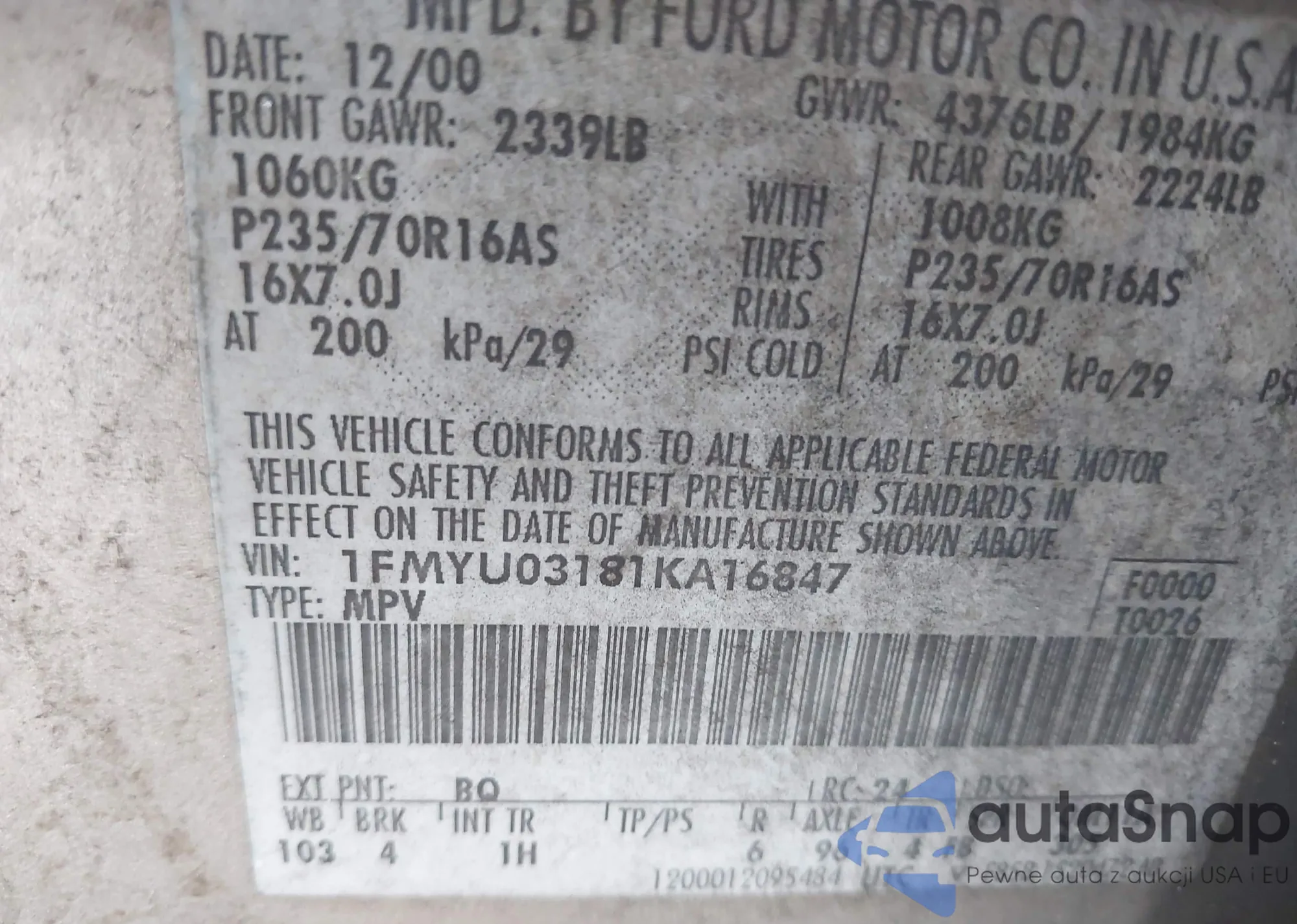 LOT: 42752148 VIN: 1FMCU94185KA68739