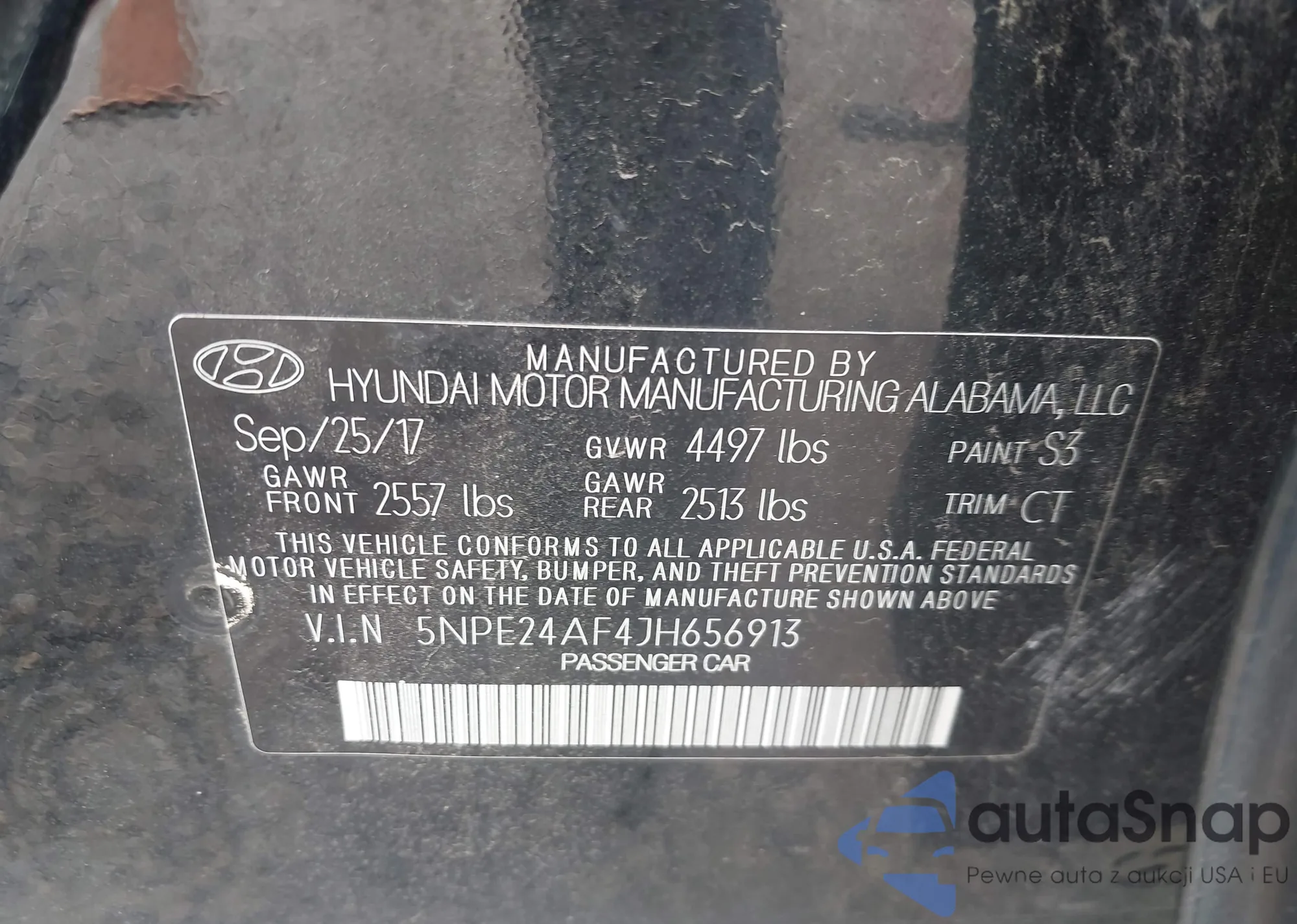 • VIN 5NPE24AF4JH656913