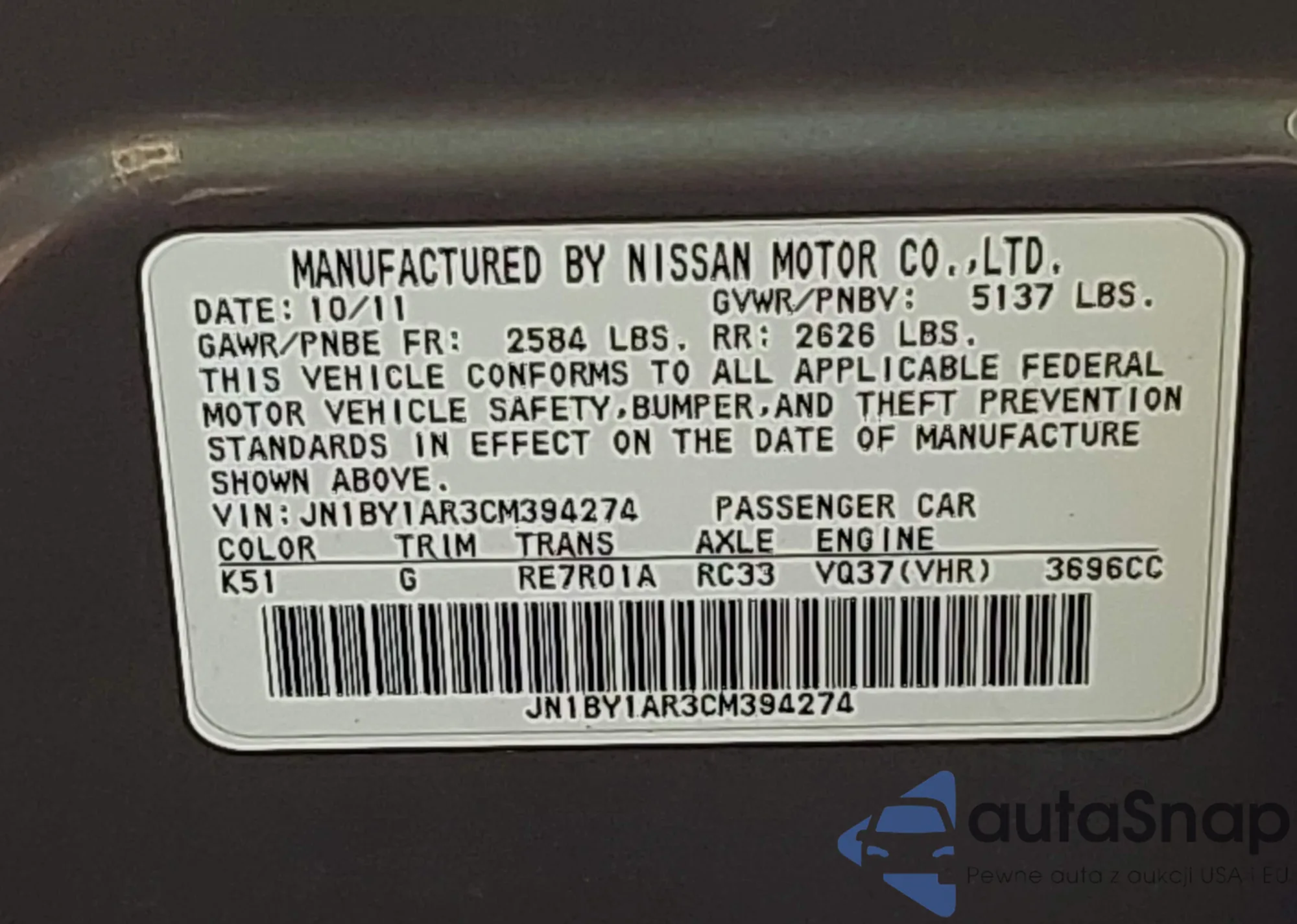 LOT: 42472706 VIN: JN1BV7AR8EM696674