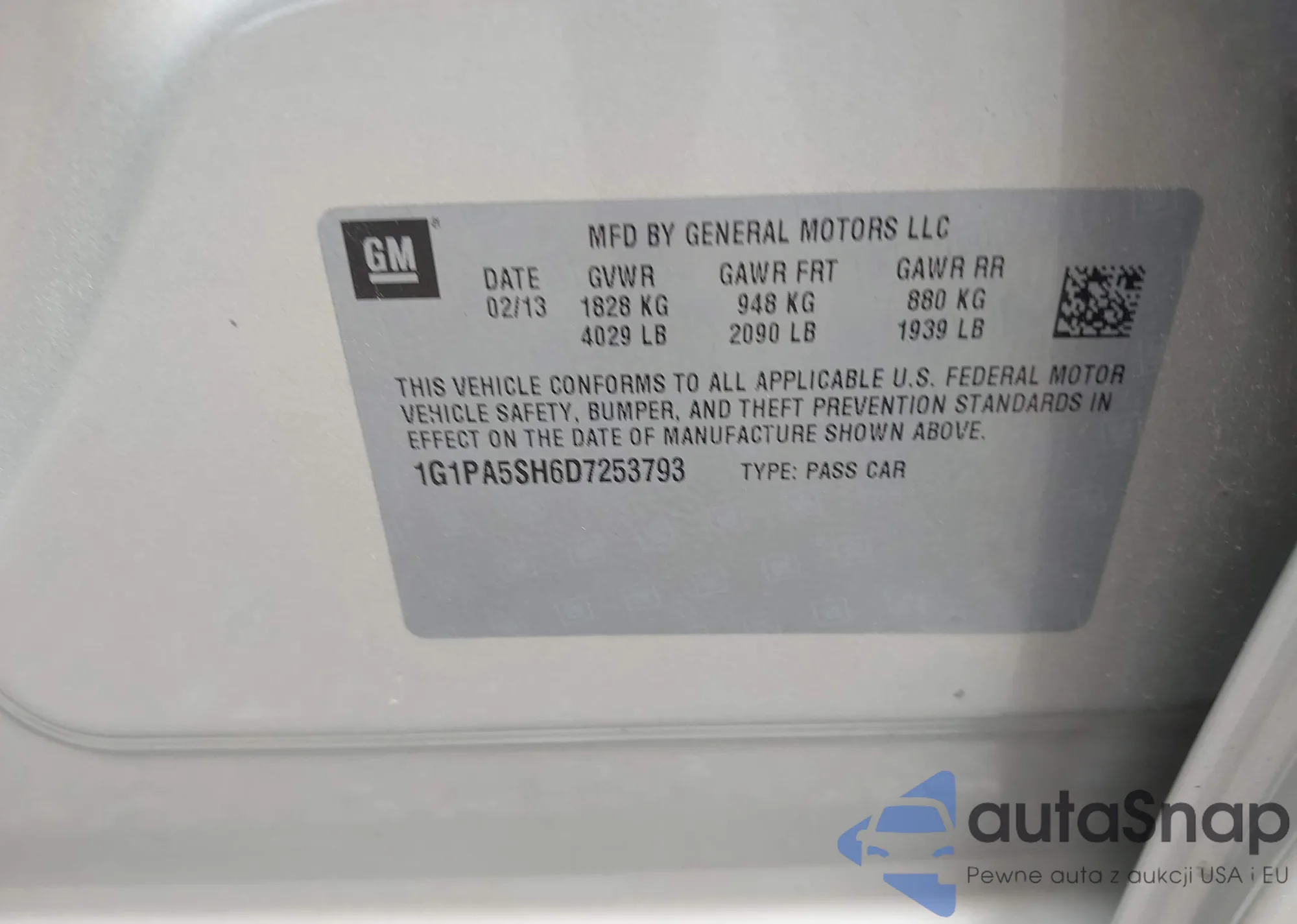 LOT: 42751465 VIN: 1G1PA5SH6D7253793