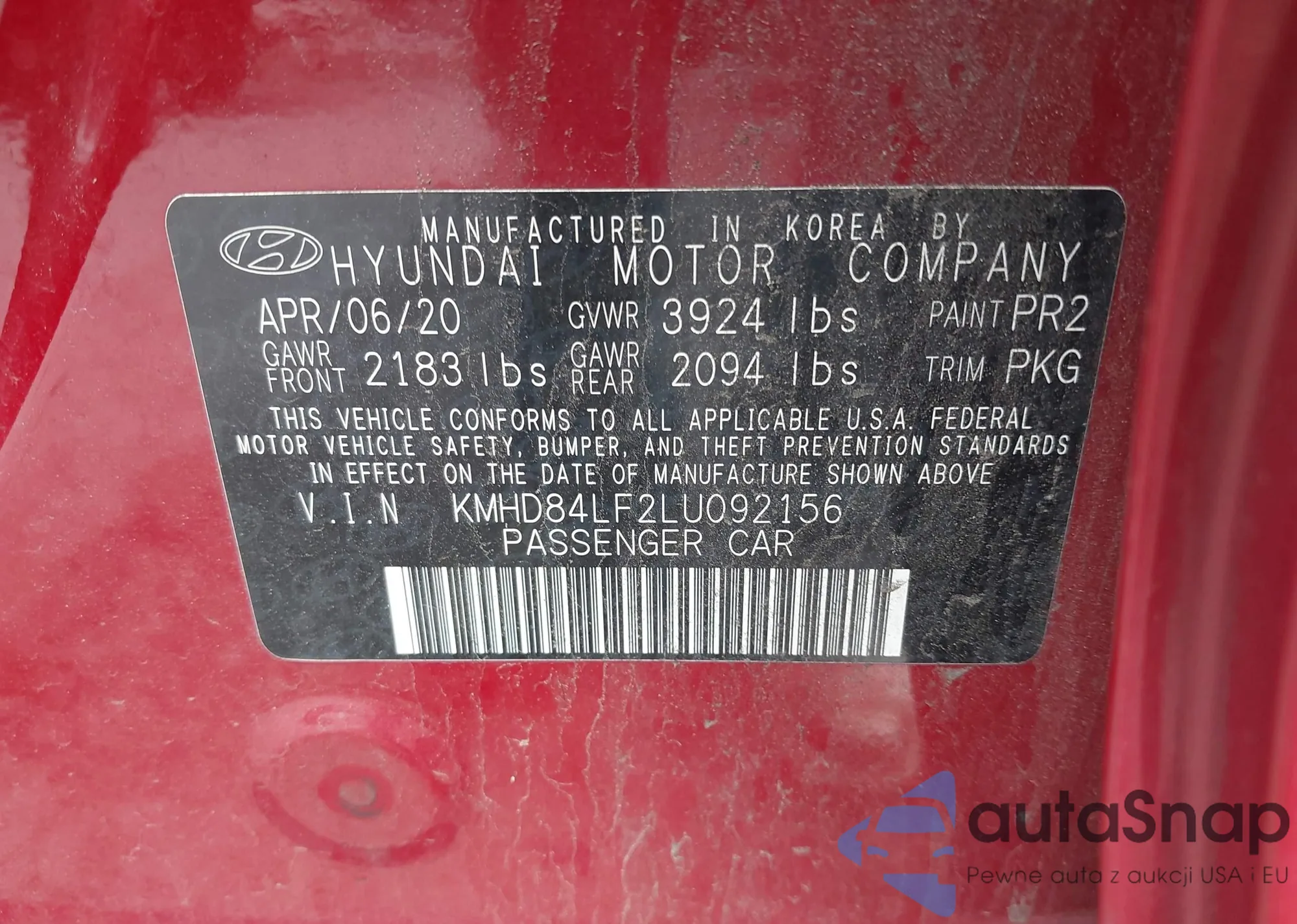 • VIN KMHD84LF2LU092156