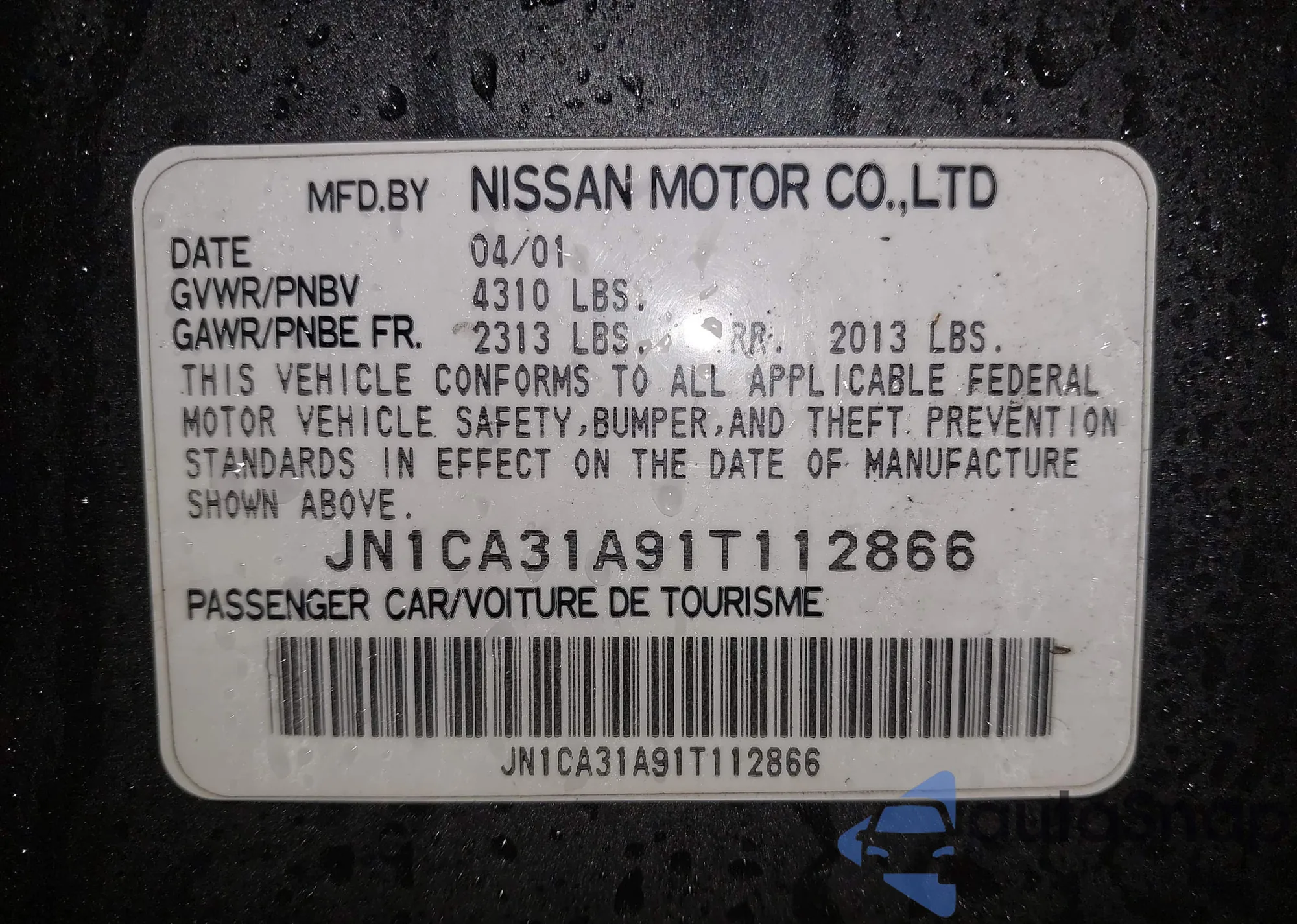 • VIN JN1CA31A91T112866
