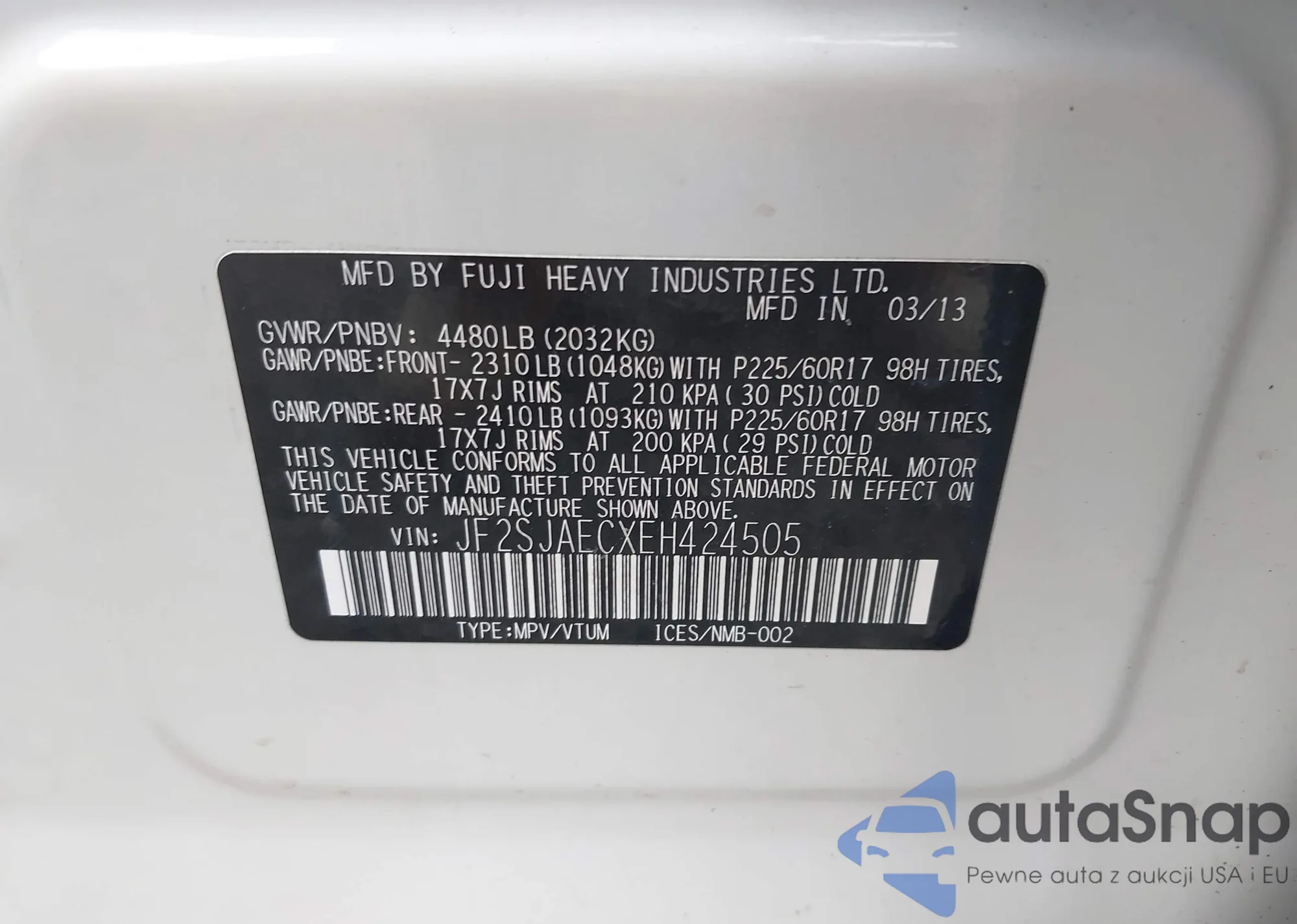 • VIN JF2SJAECXEH424505