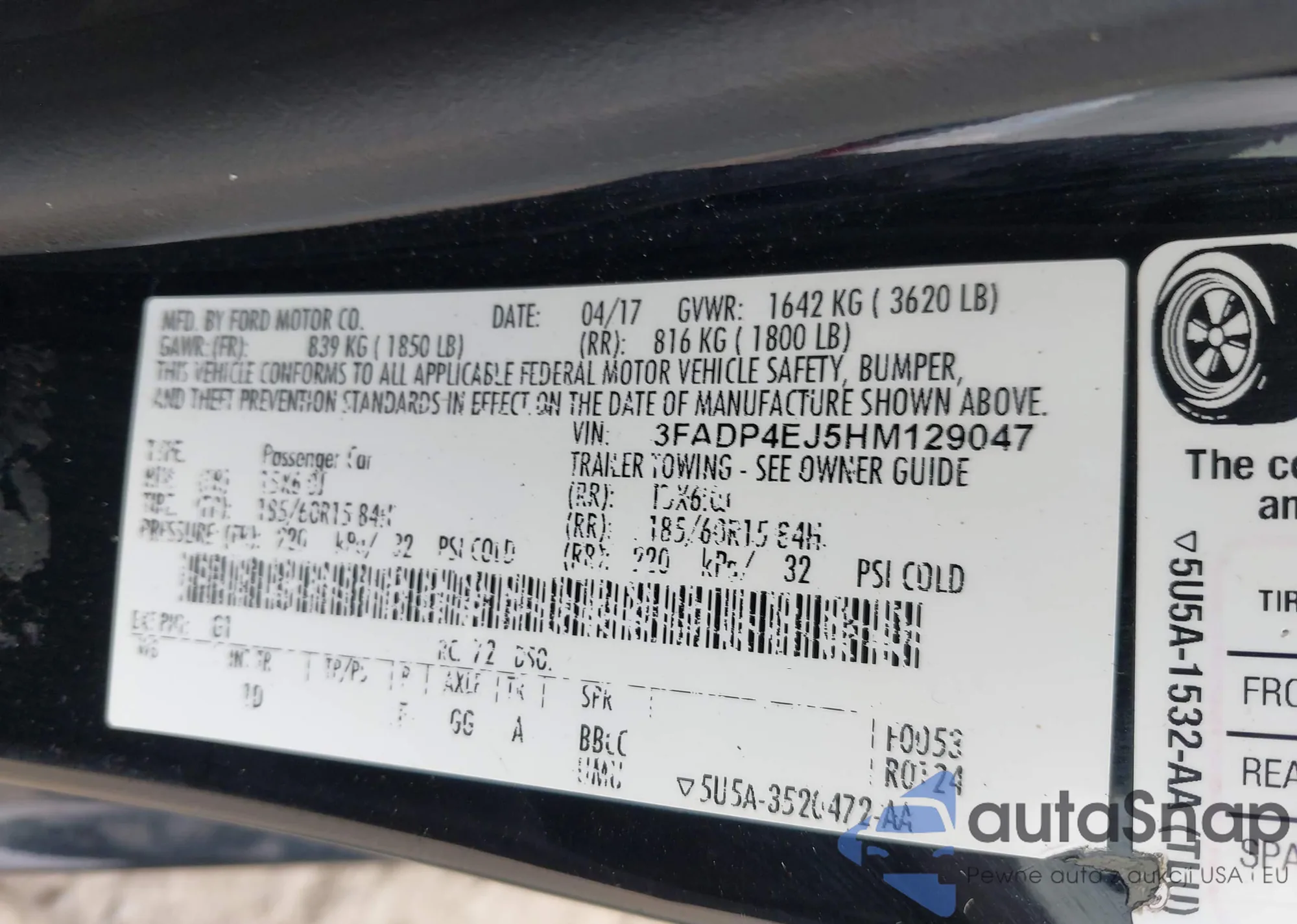 LOT: 42652713 VIN: 3FADP4EJ5HM129047