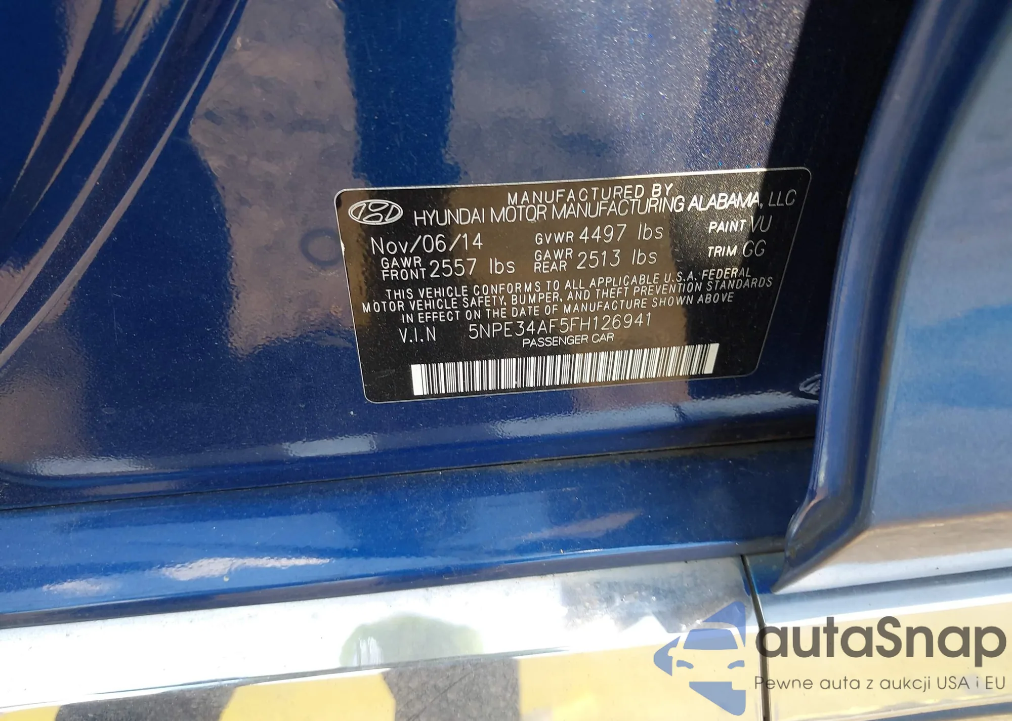 • VIN 5NPE34AF5FH126941
