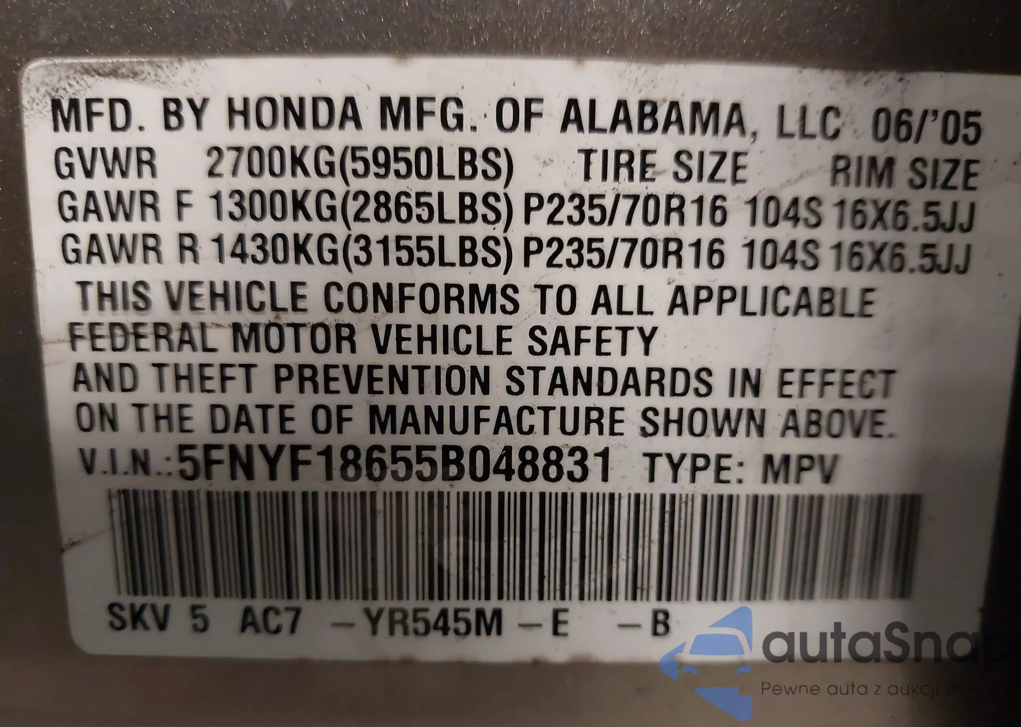 • VIN JN8AF5MR2DT203456
