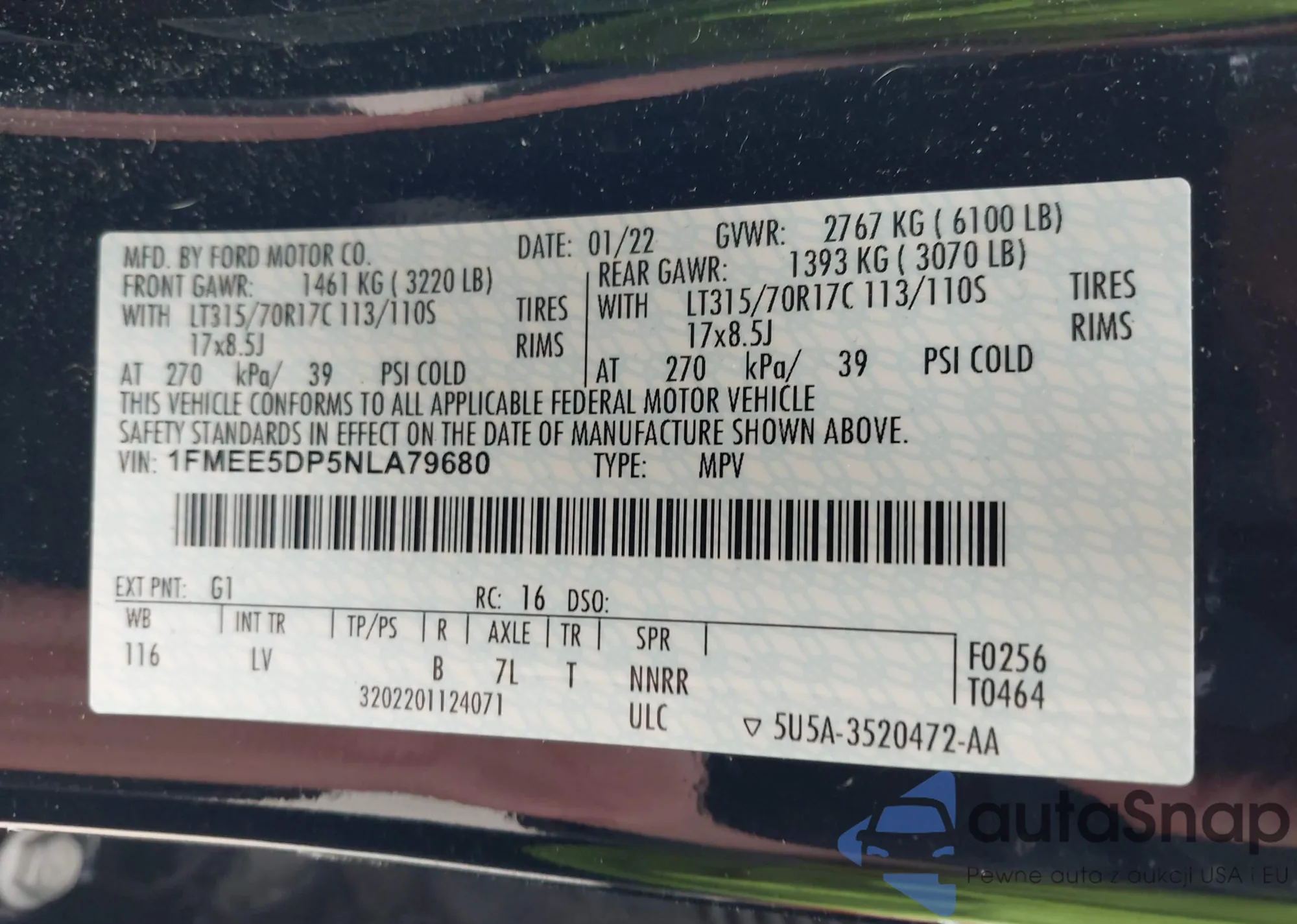 • VIN 1FMEE5DP5NLA79680