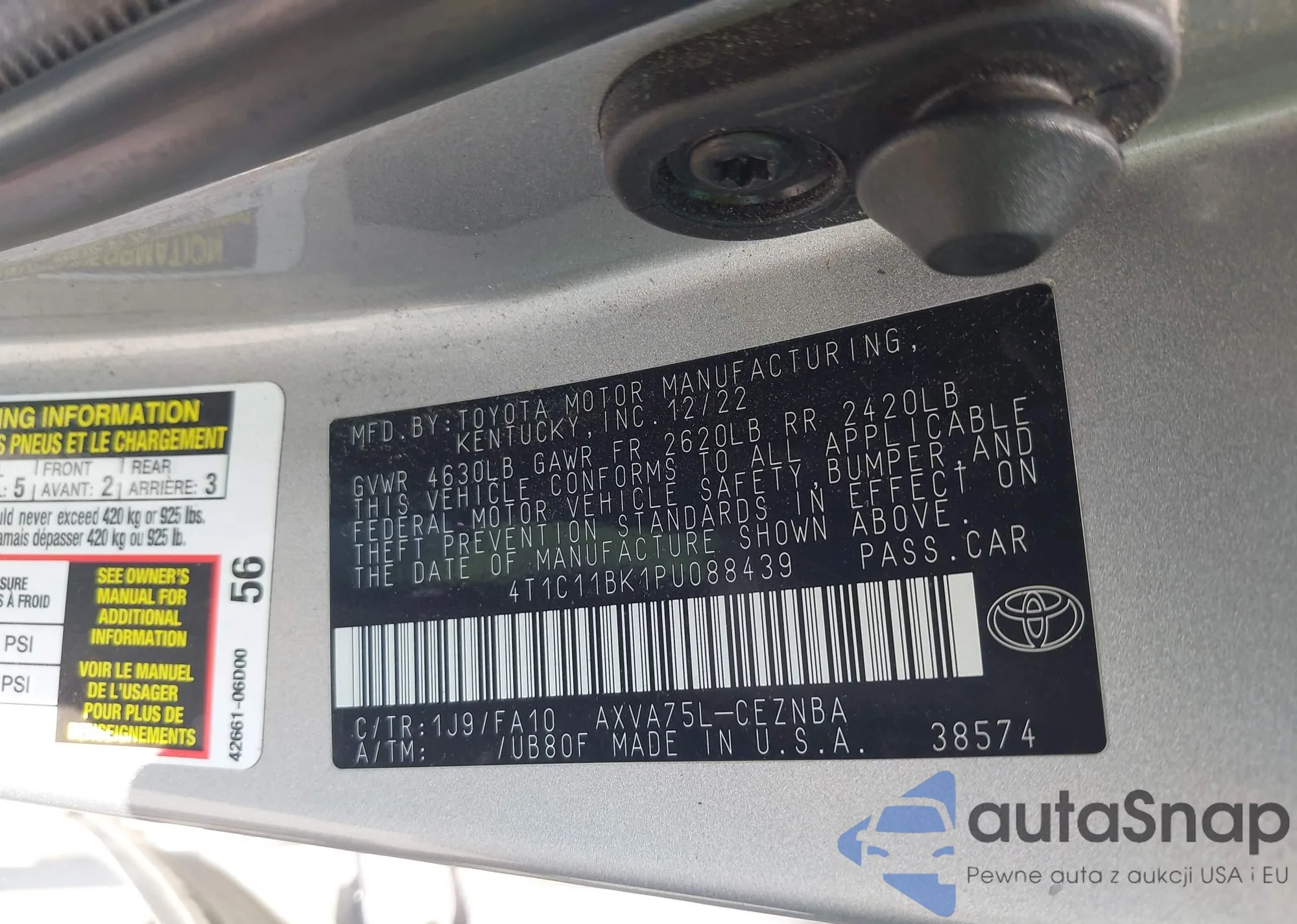 LOT: 42596800 VIN: 4T1C11BK1PU088439