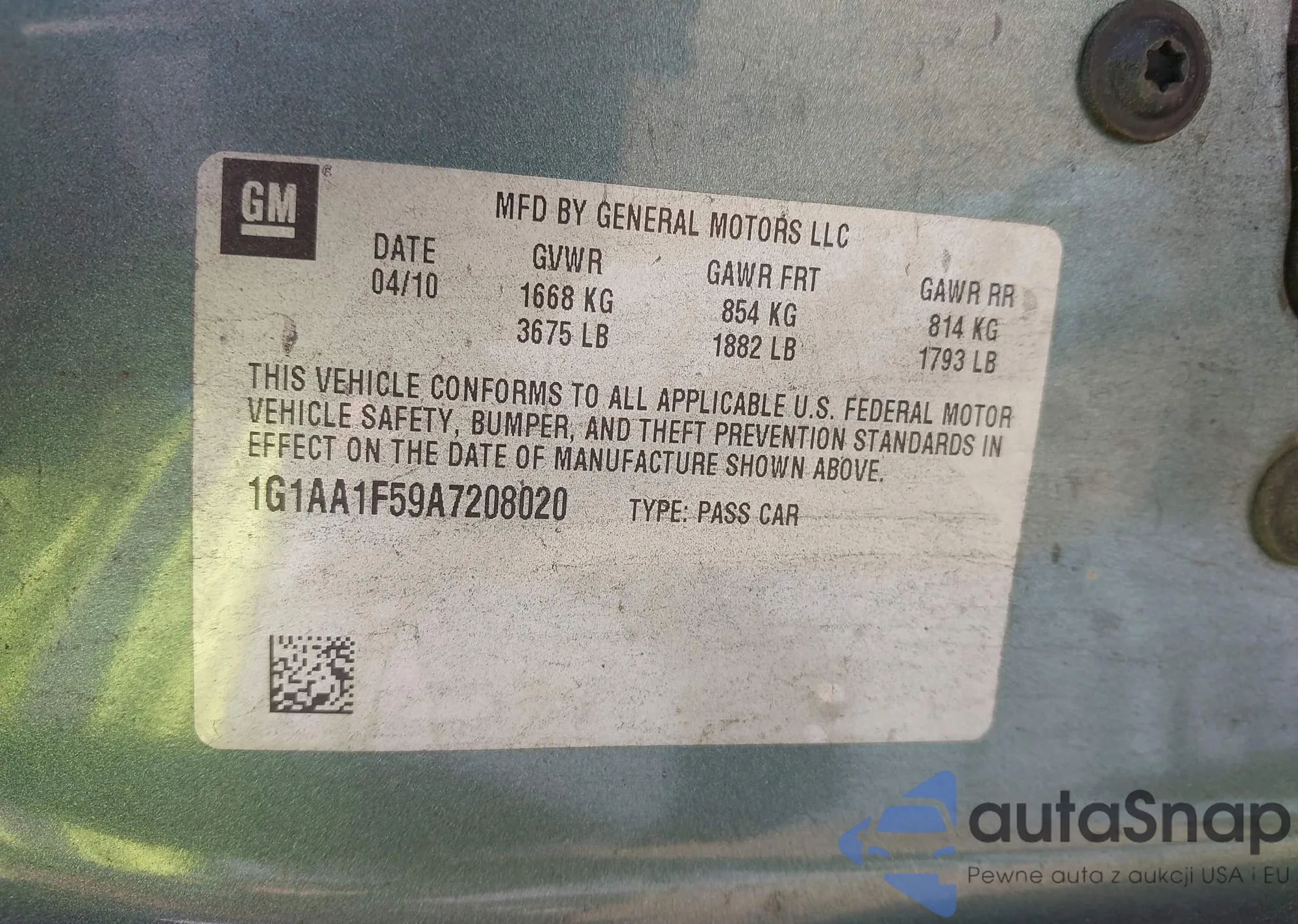 • VIN 1G1AA1F59A7208020