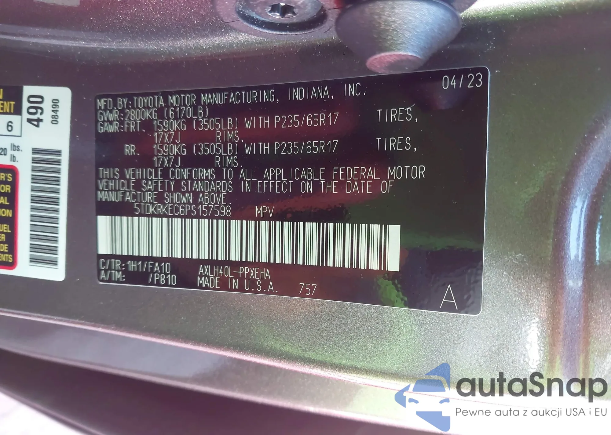 • VIN 5TDKRKEC6PS157598