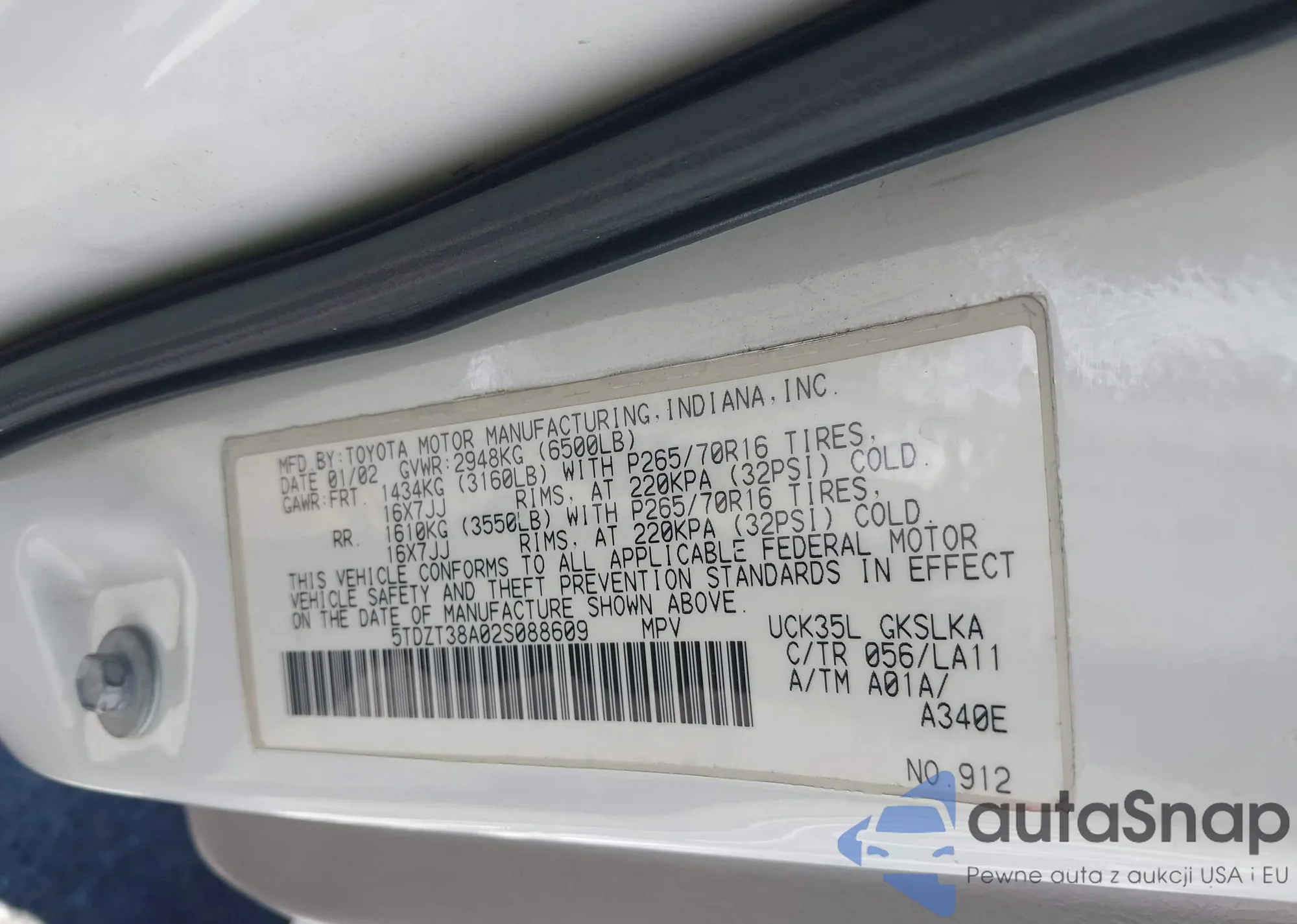 LOT: 42794714 VIN: 5TDZT38A02S088609