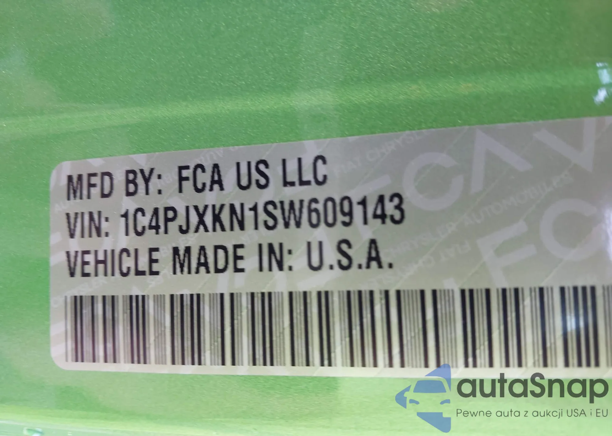 • VIN 1C4PJXKN1SW609143