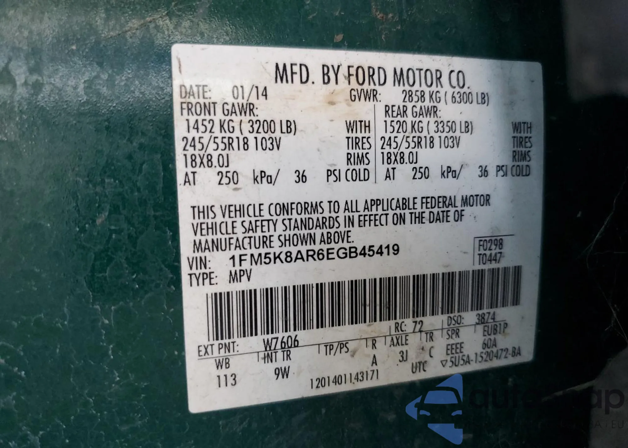 LOT: 65011645 VIN: 1FM5K8AR6EGB45419