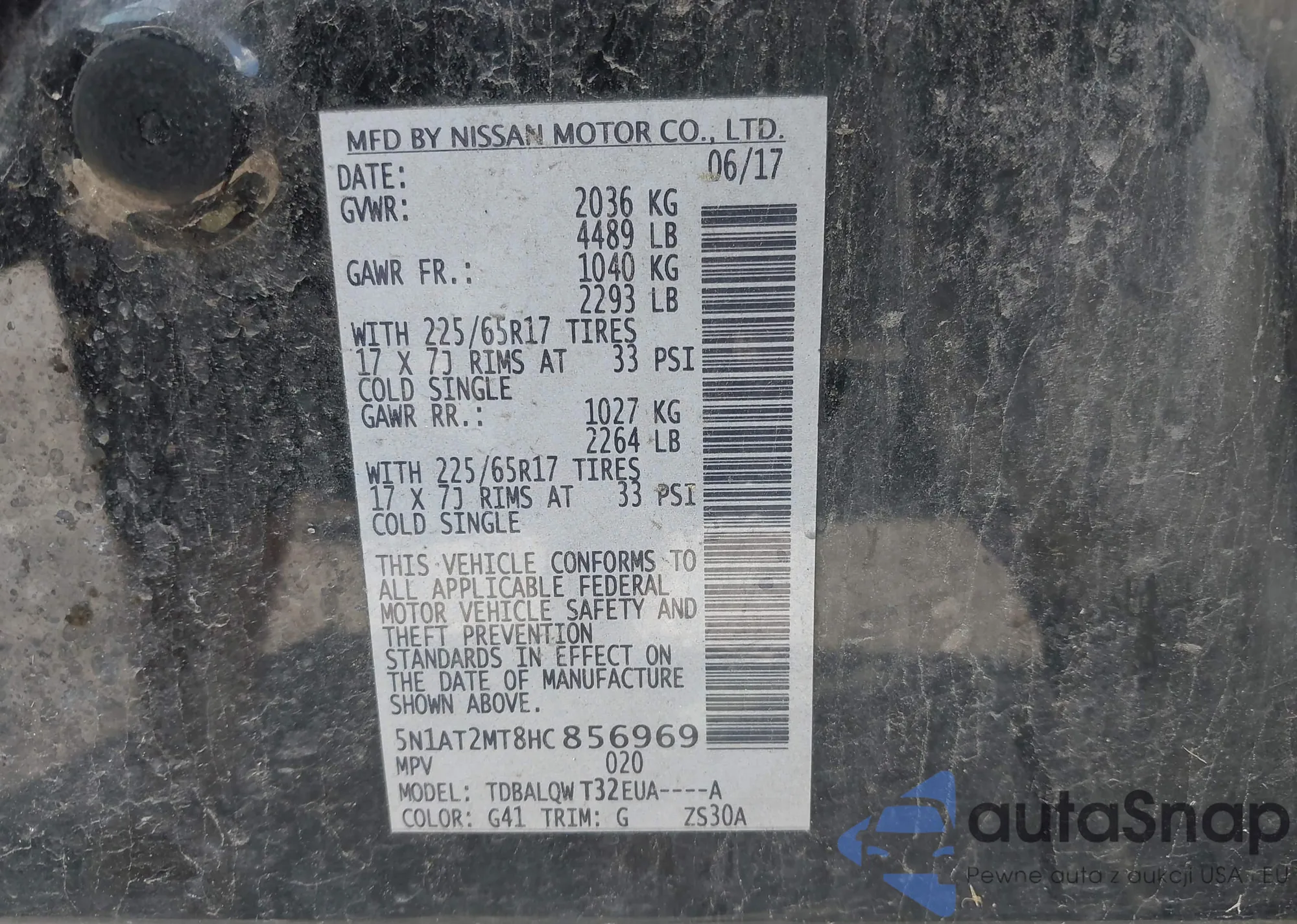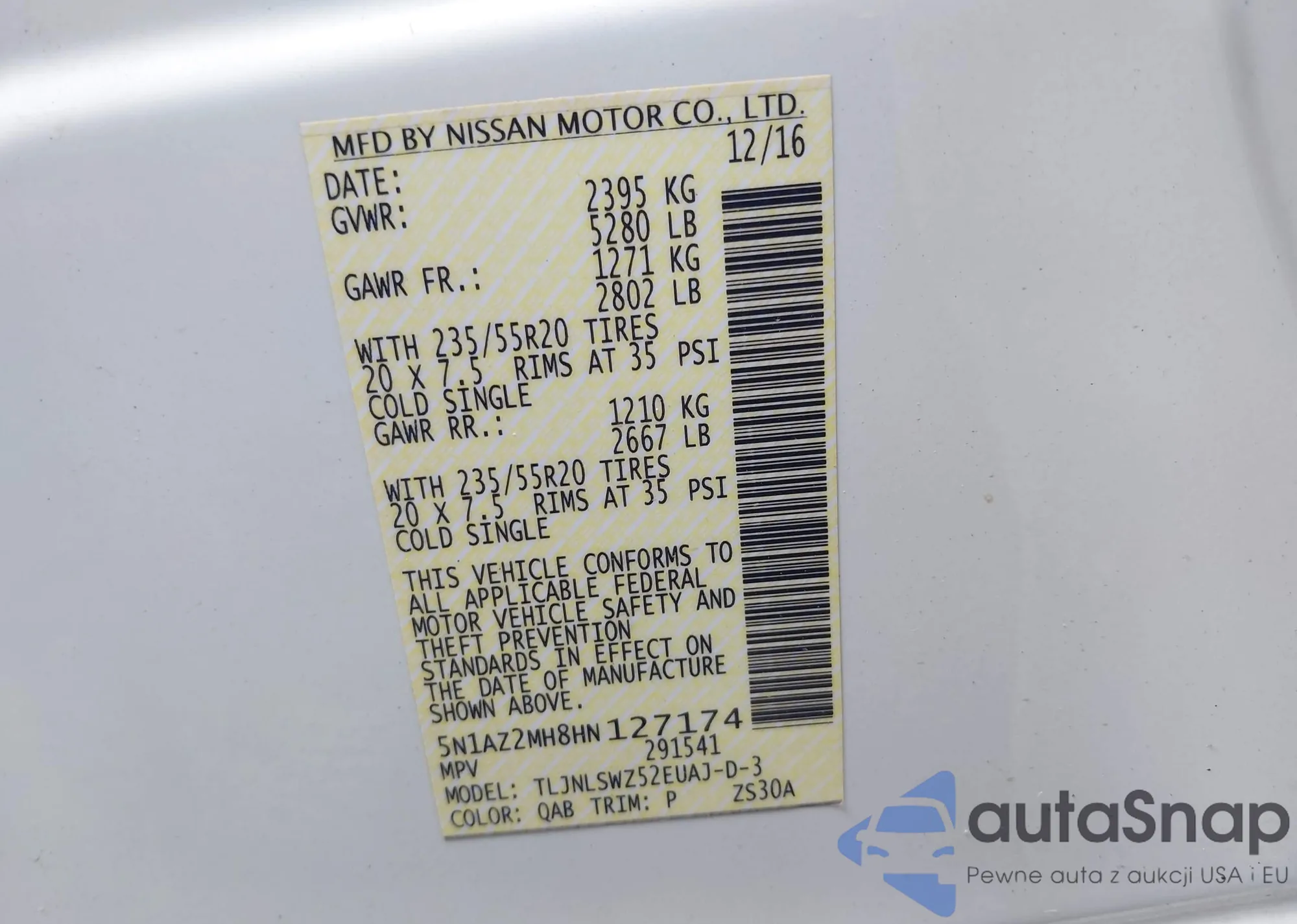 • VIN 5N1AZ2MH8HN127174