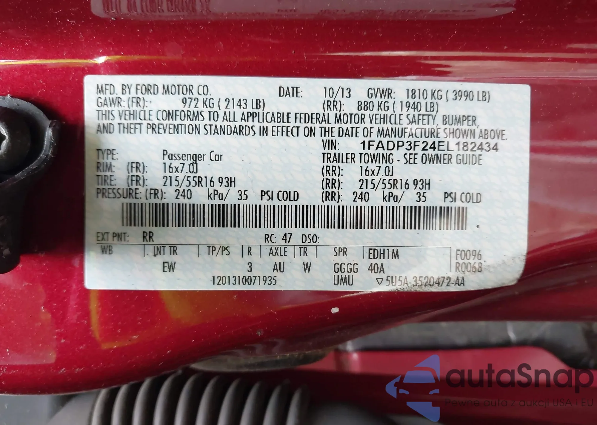 LOT: 42759170 VIN: 1FADP3F24EL248626