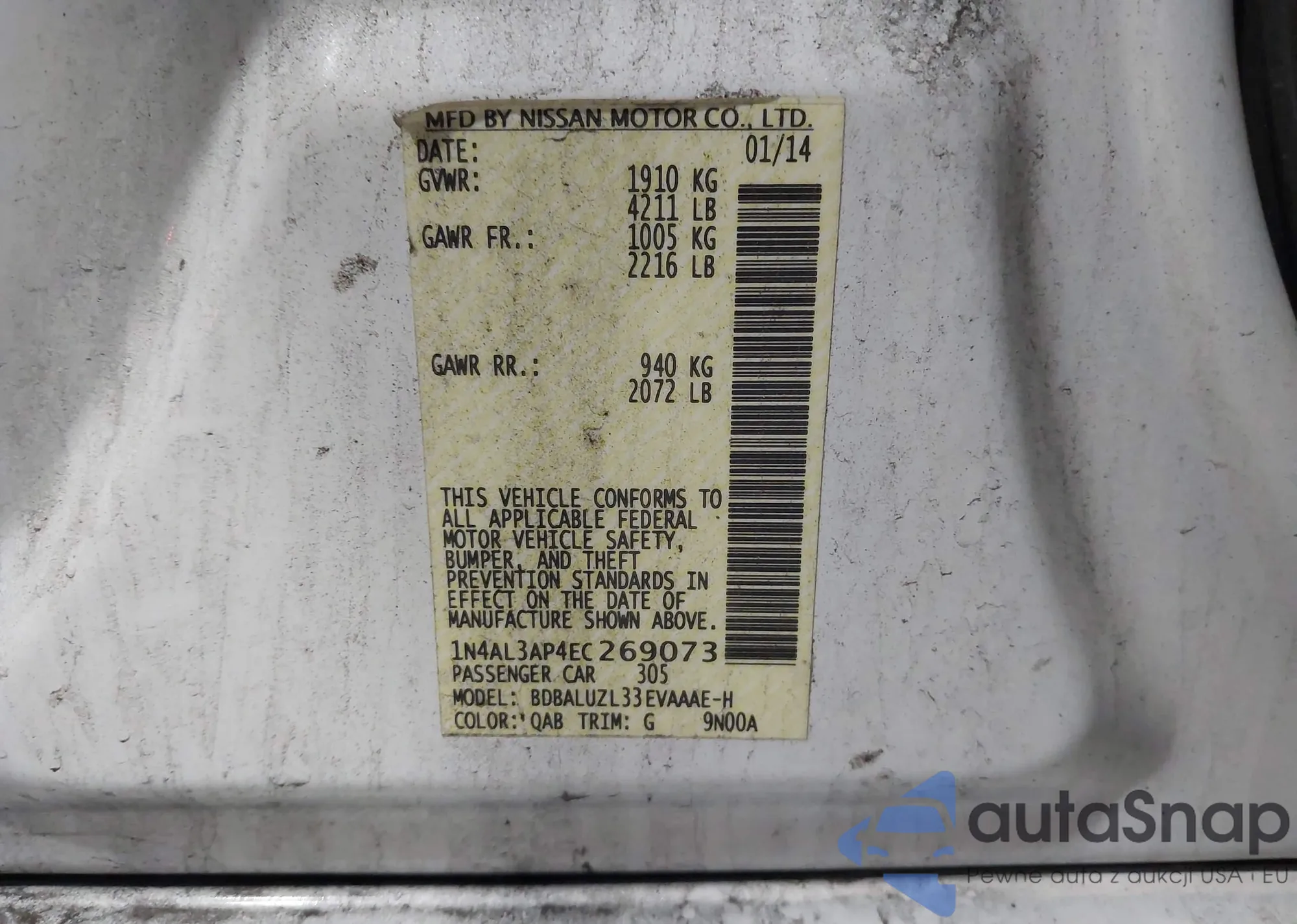 LOT: 42747311 VIN: 1N4AL3AP4EC269073