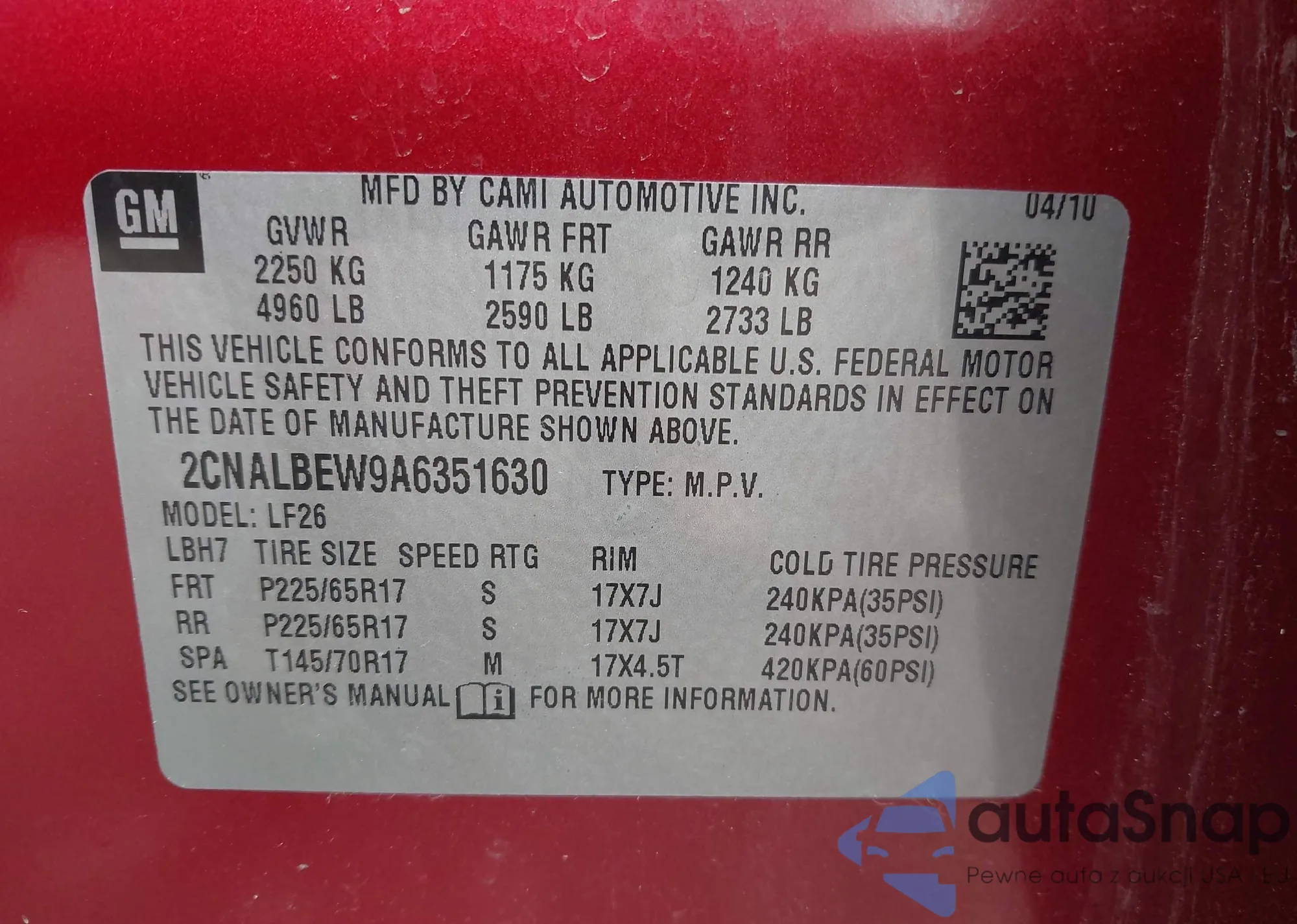 LOT: 42699437 VIN: 1FAHP25W29G111652