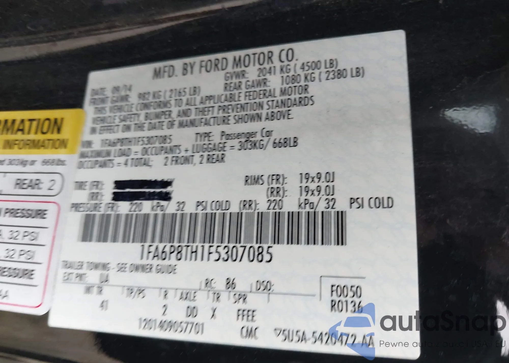 • VIN 1FA6P8TH1F5307085