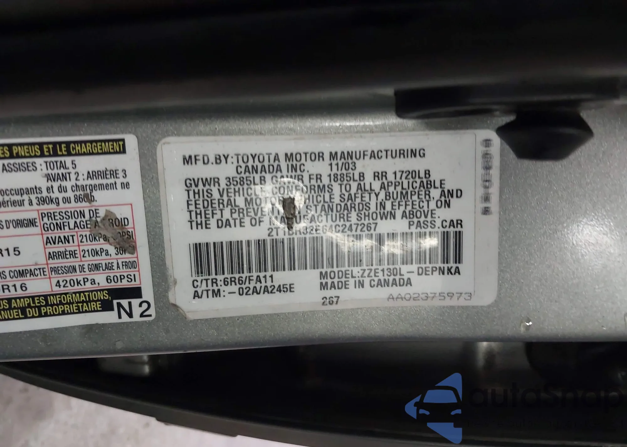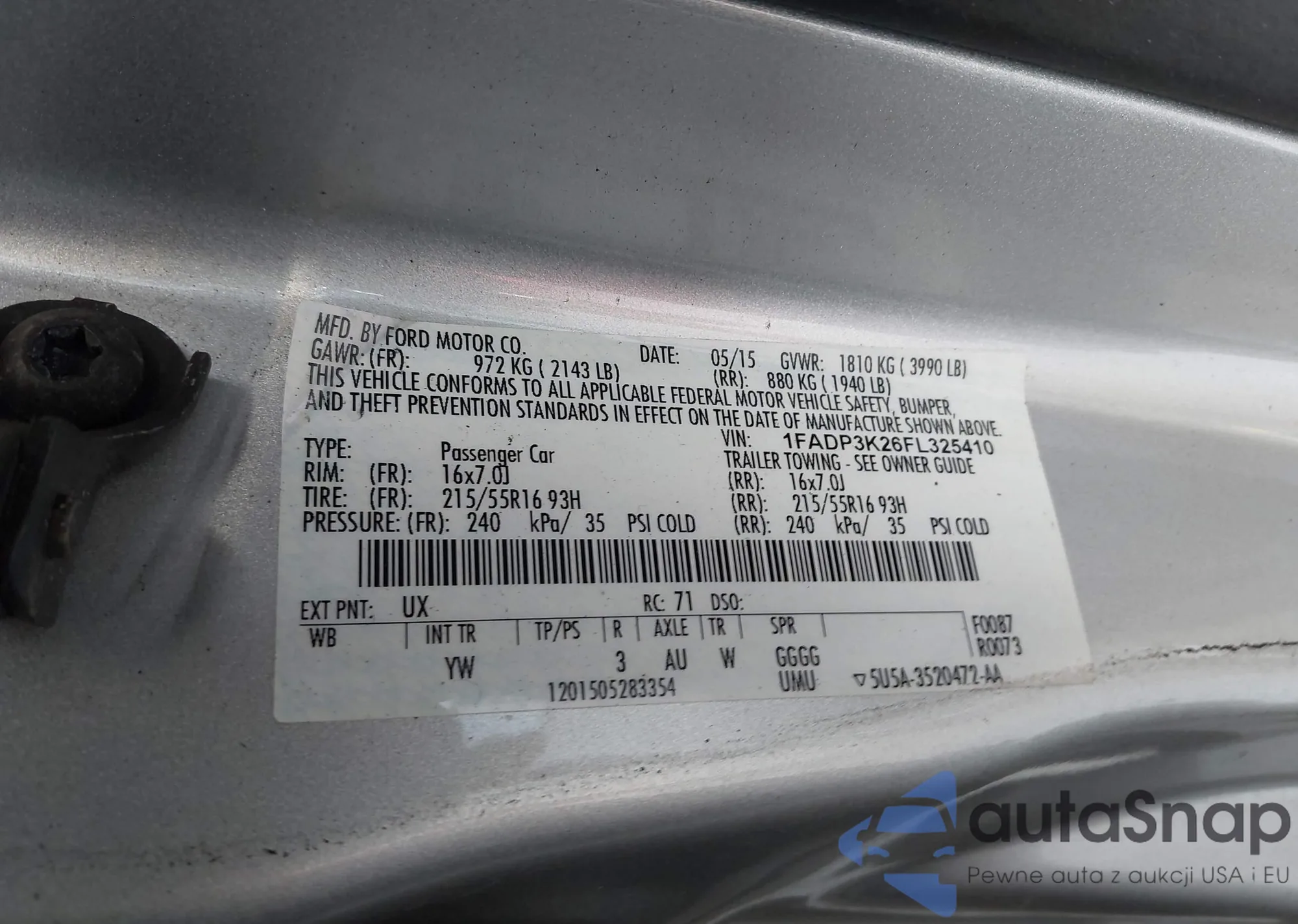 LOT: 42601041 VIN: 1FADP3K26FL325410