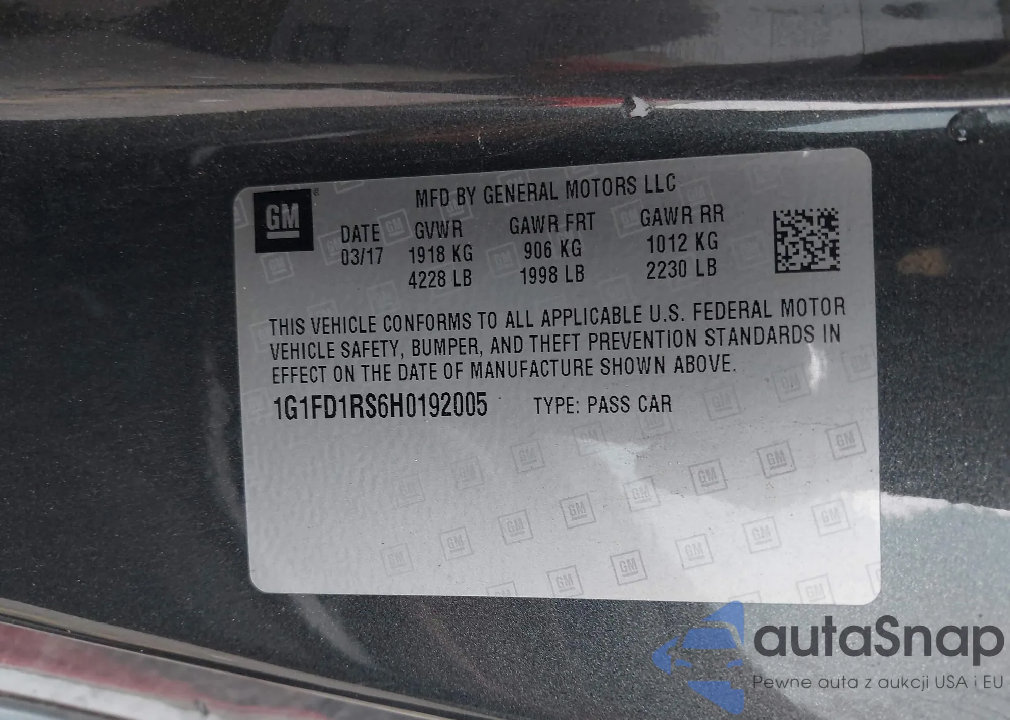 • VIN 1G1FD1RS6H0192005