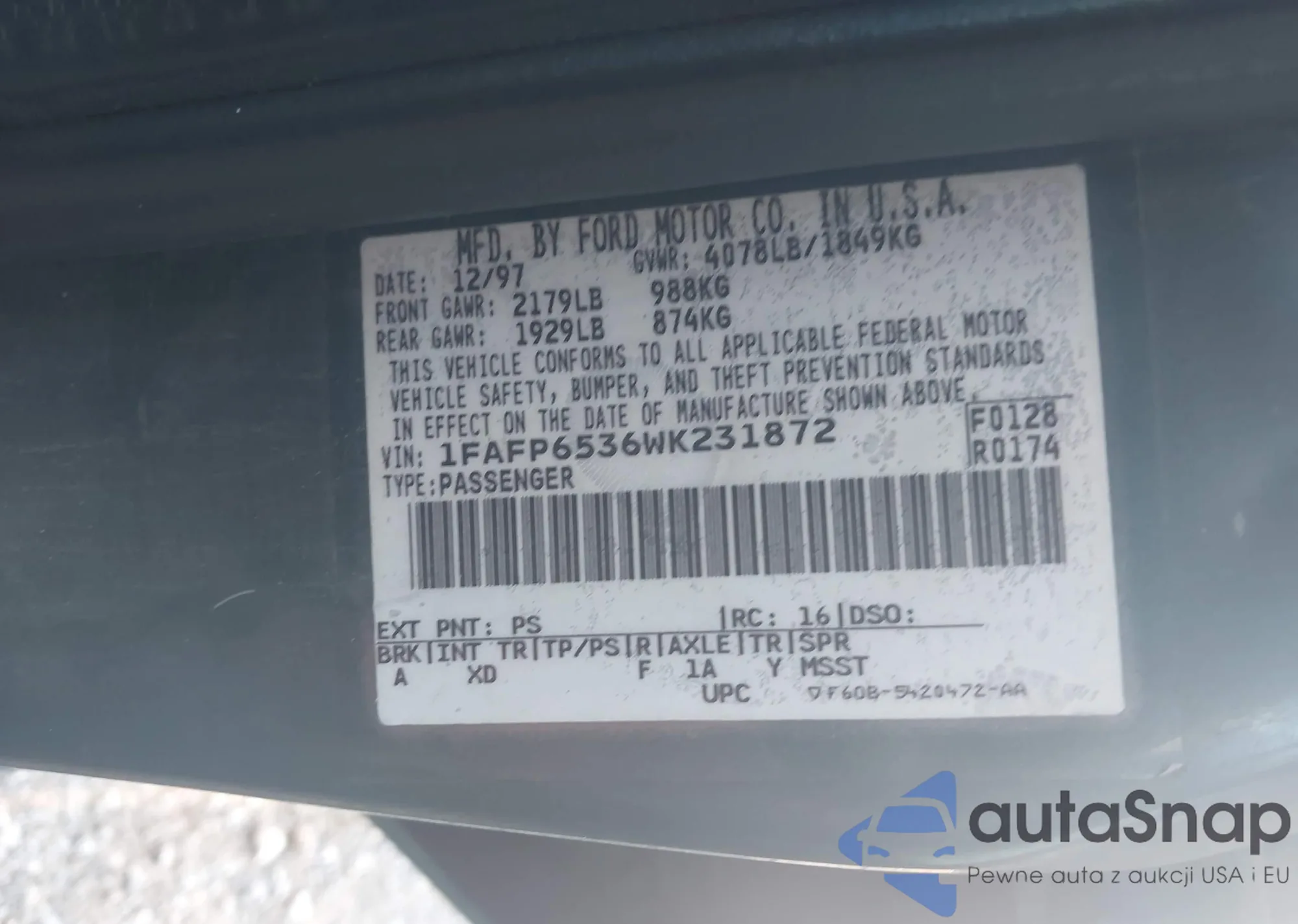 LOT: 41772414 VIN: 3FAHP08127R277406