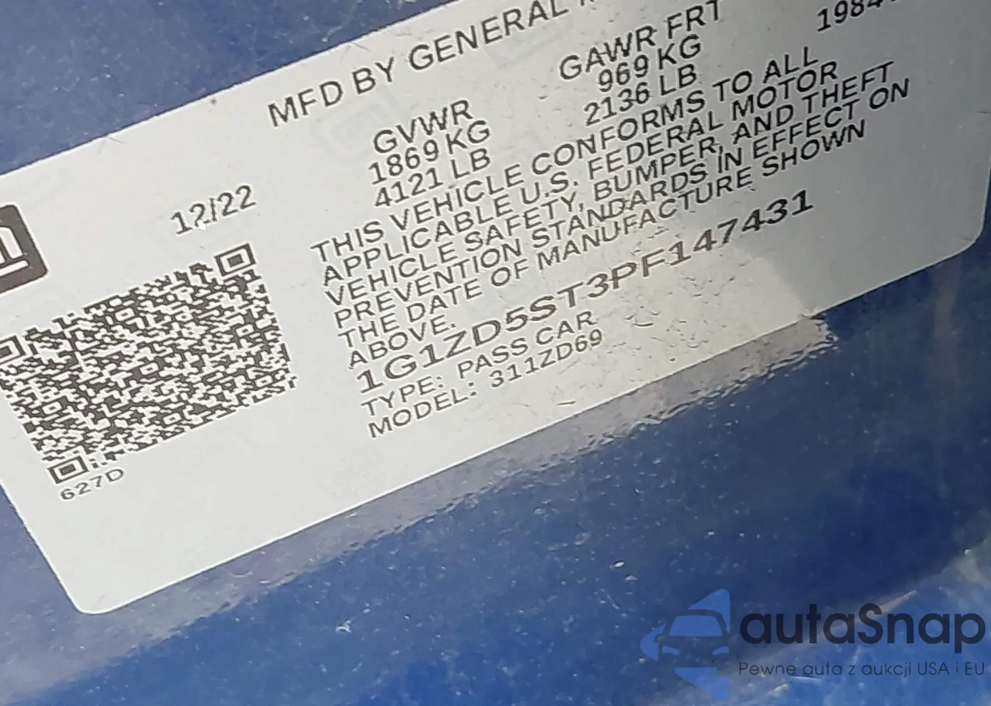 LOT: 42424077 VIN: 1G1ZD5ST3PF147431