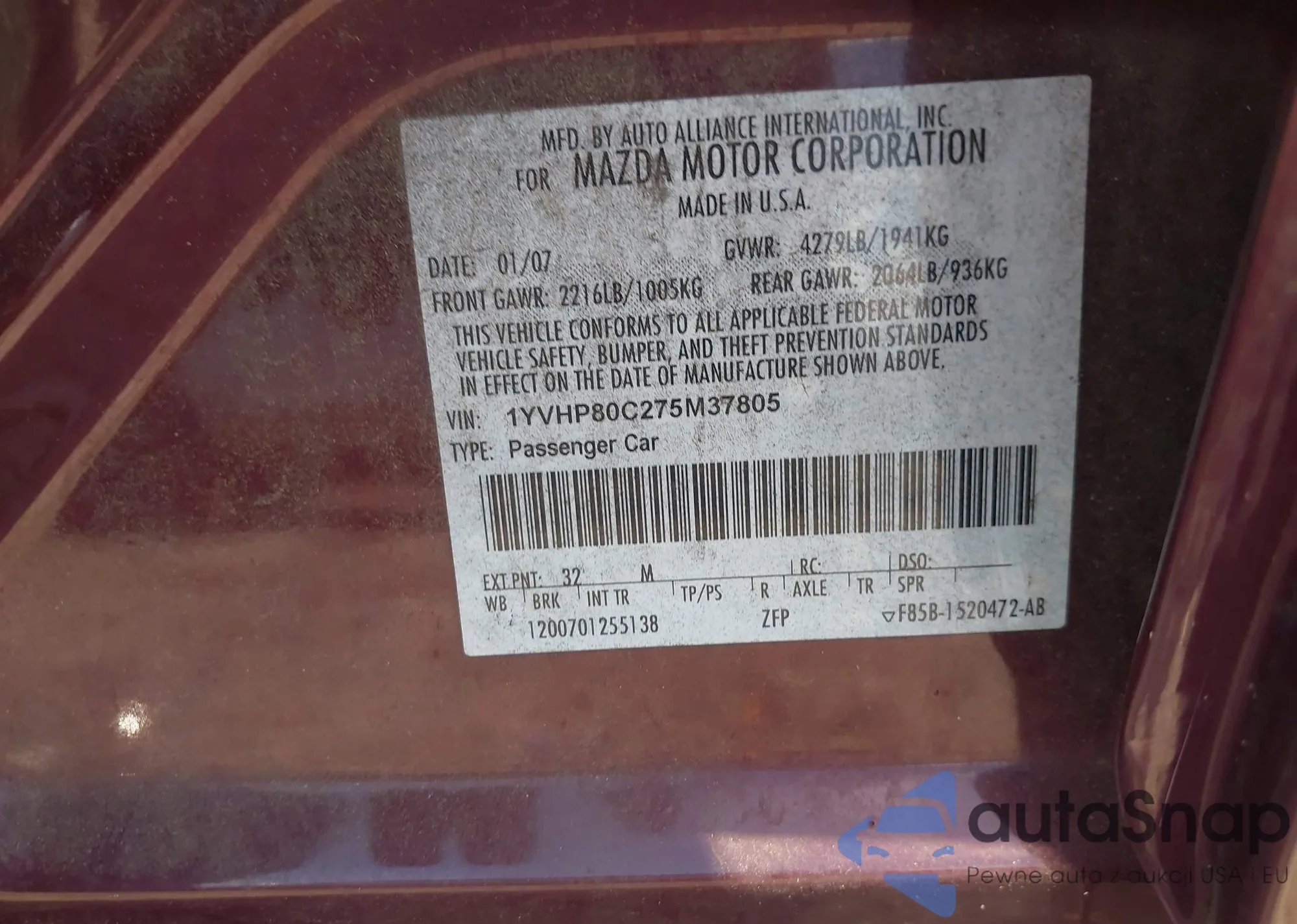 LOT: 42710853 VIN: 1YVHP80C275M37805