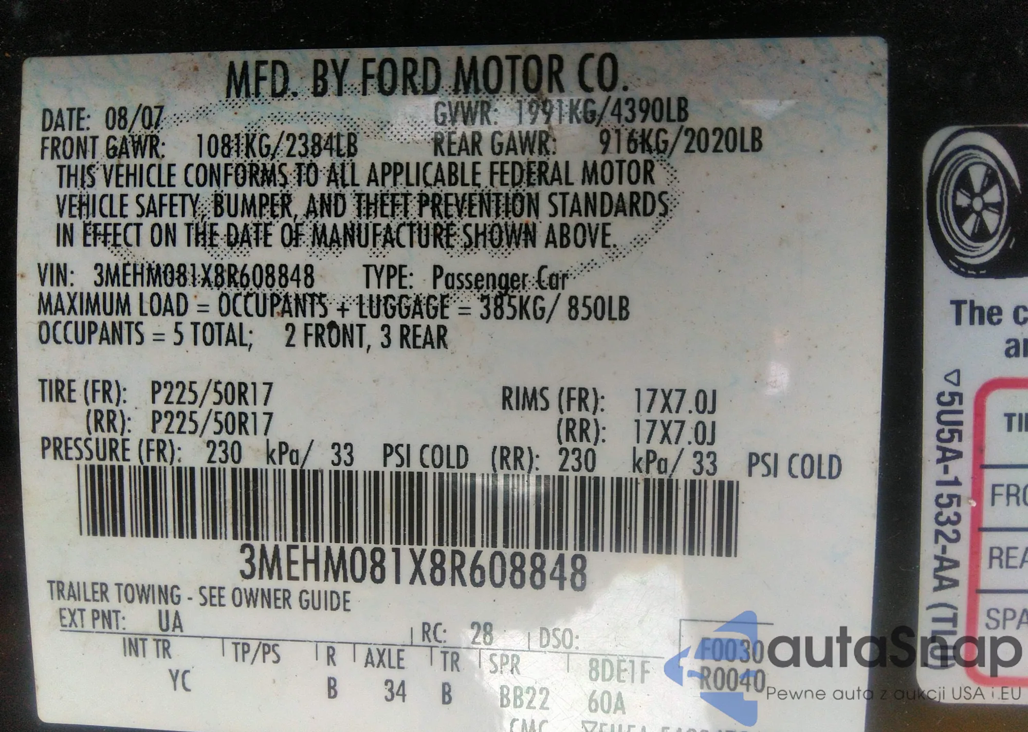 • VIN 1FMDU32X8SUA90054