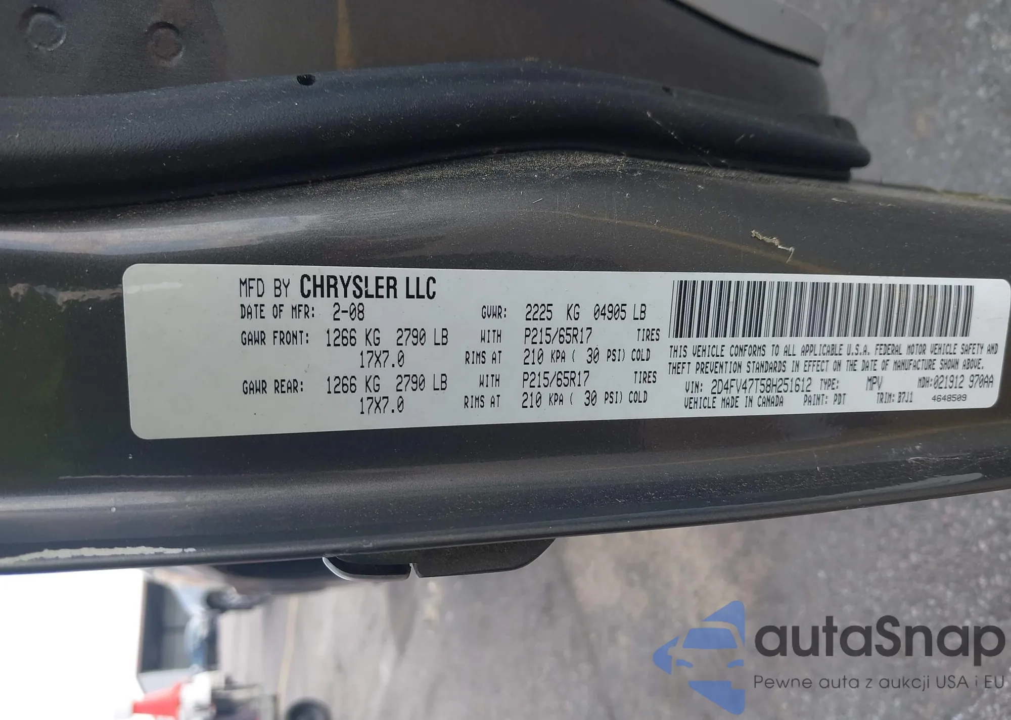 LOT: 42867963 VIN: 2D4FV47T58H251612