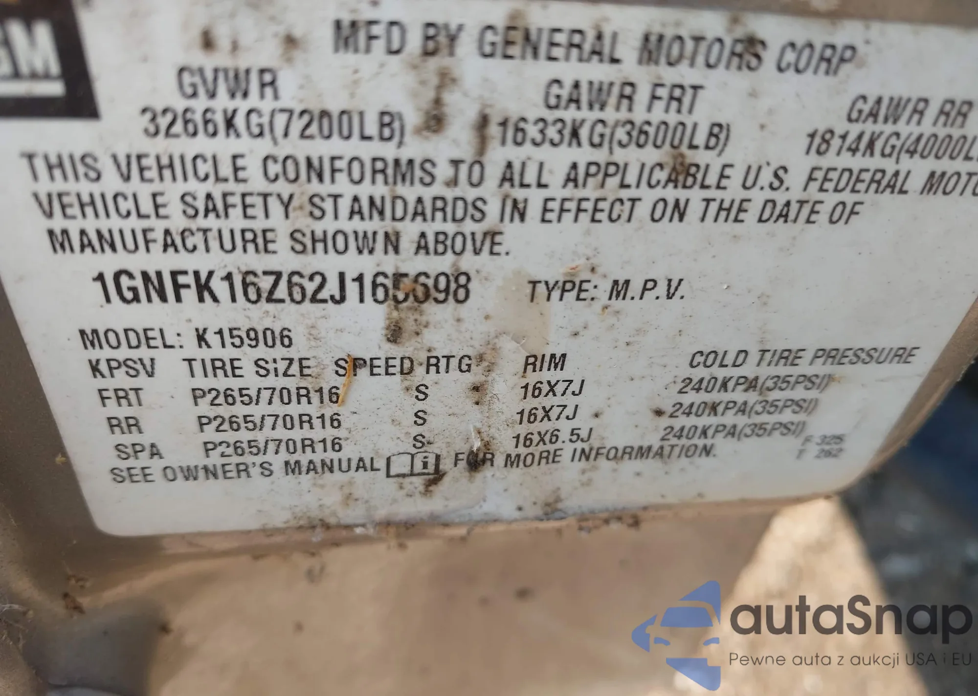 LOT: 42752184 VIN: KNAGM4A73F5606858