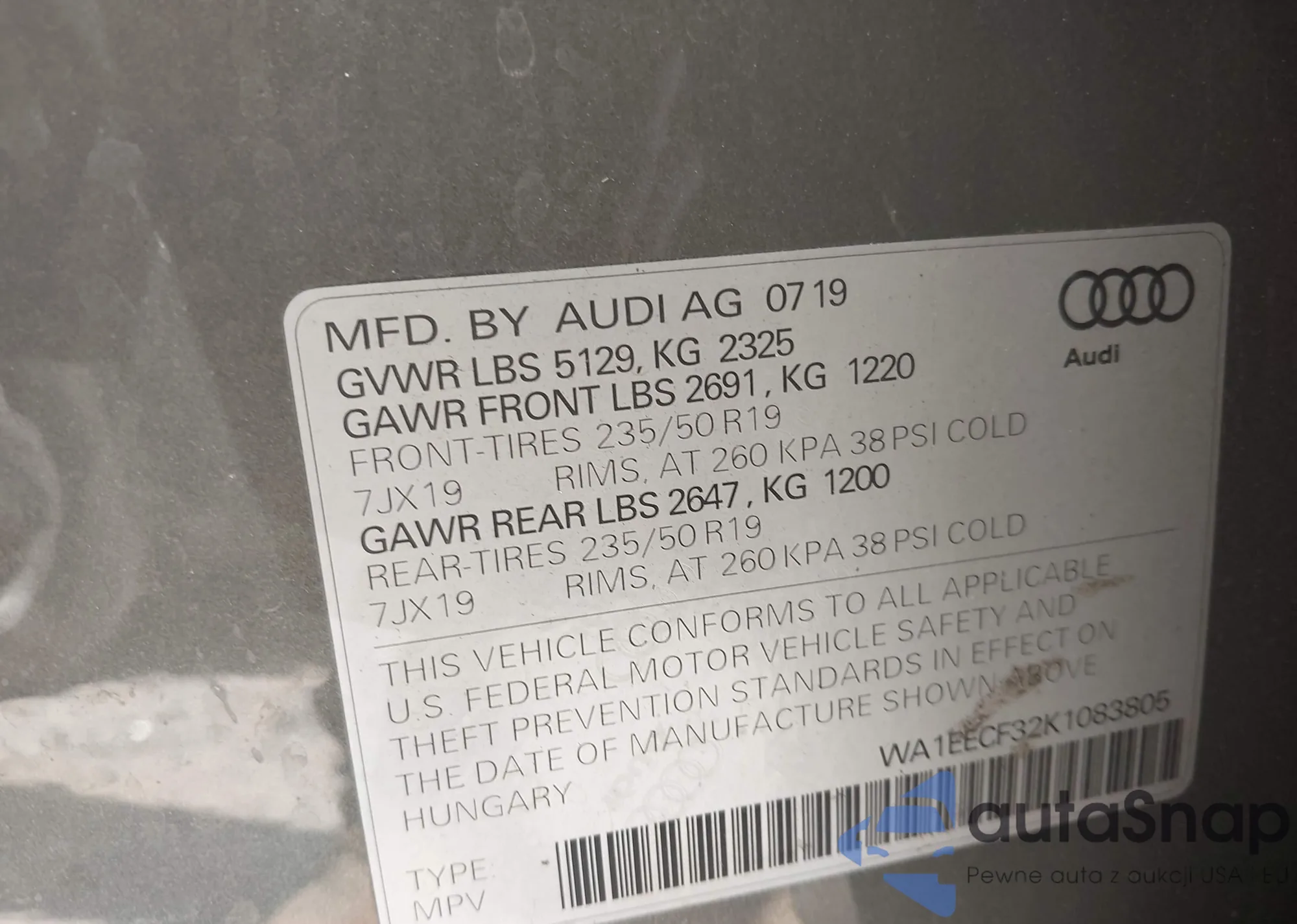 LOT: 42449869 VIN: WA1EECF32K1083805