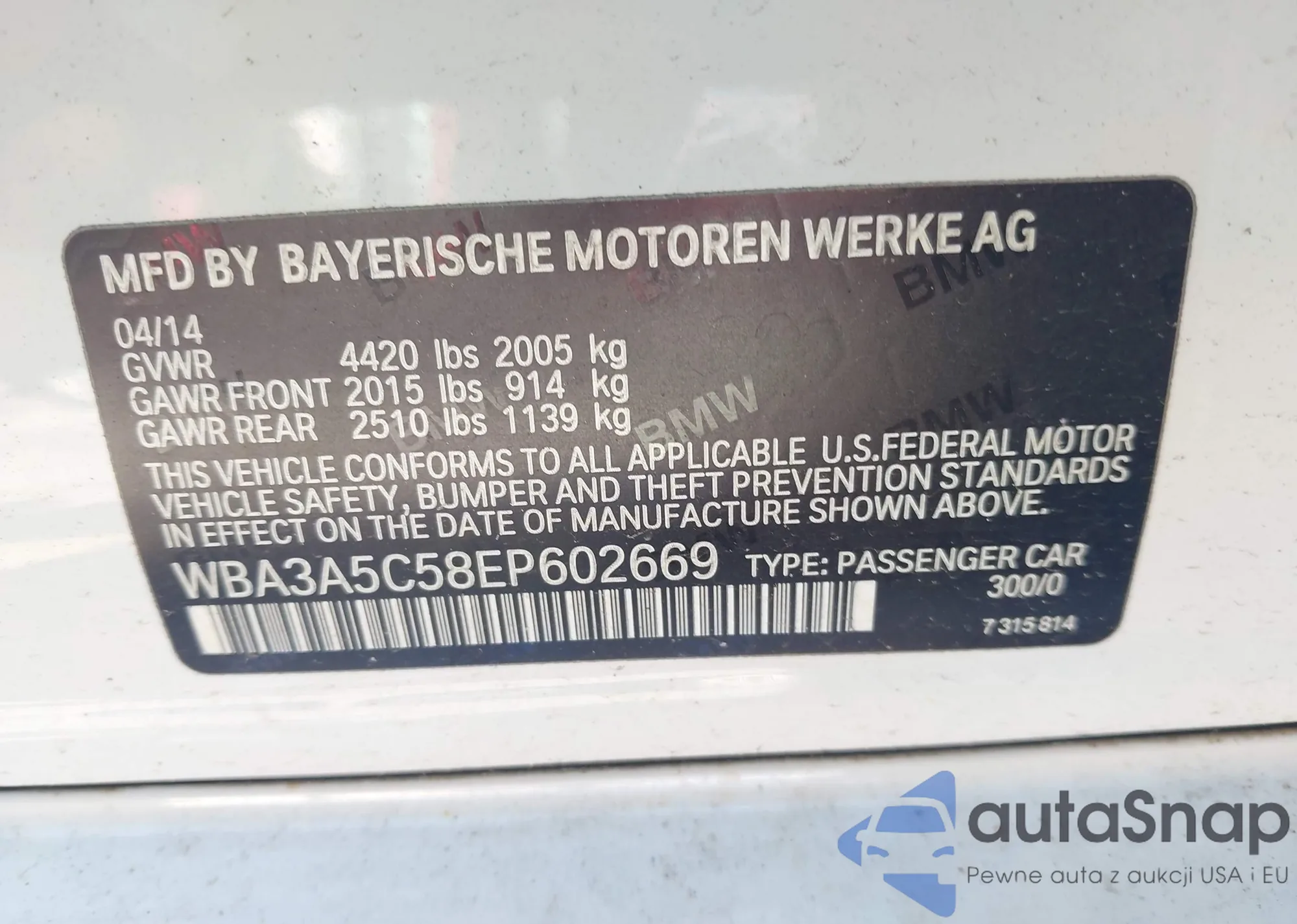 • VIN WBA3A5C58EP602669