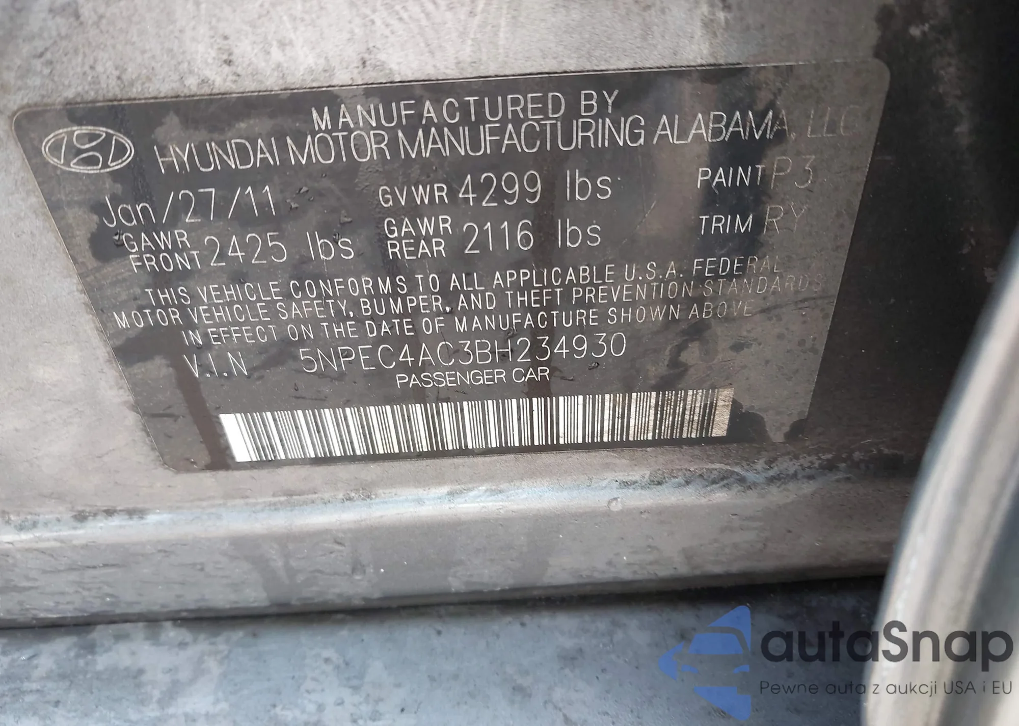 • VIN 5NPEC4AC3BH234930