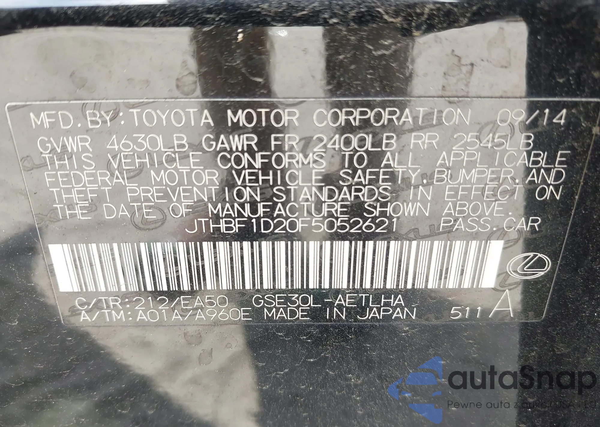 LOT: 42668970 VIN: JTHBF1D20F5052621