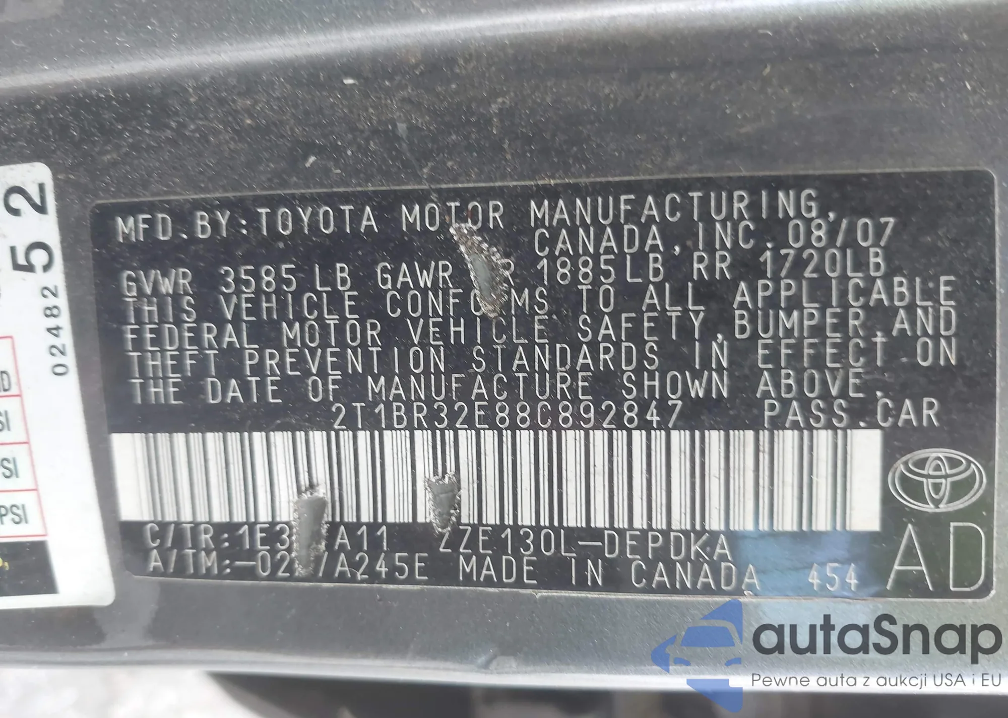 • VIN 2T1BR32E88C892847