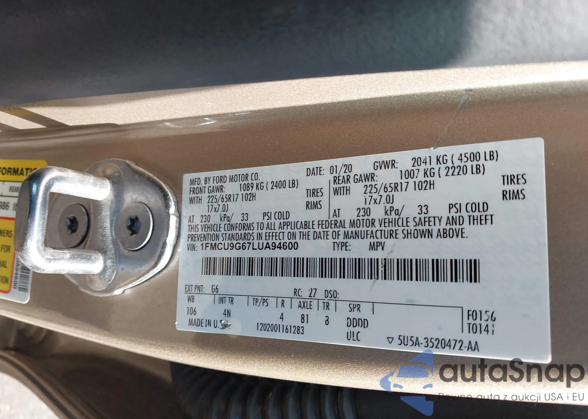 LOT: 42504258 VIN: 1FMCU9D71AKA94985