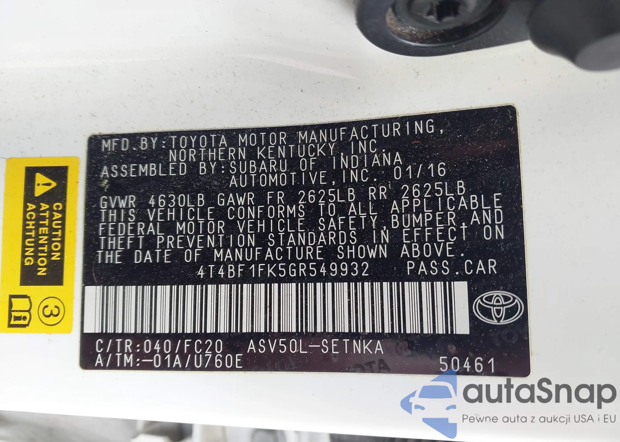 • VIN 4T4BF1FK5GR549932