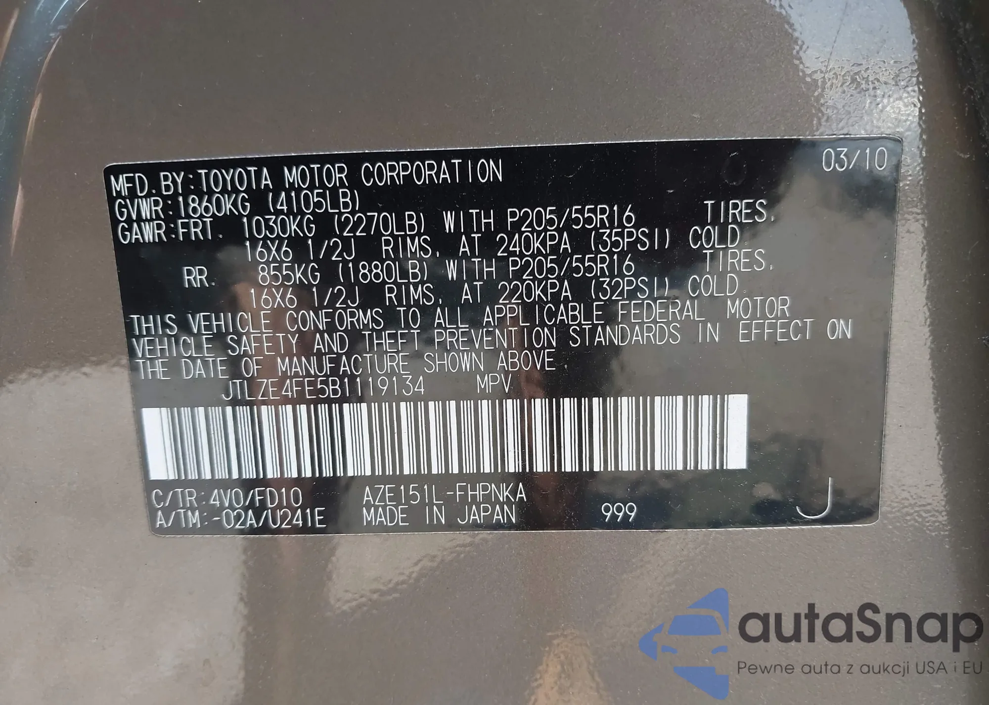 • VIN JTLZE4FE5B1119134