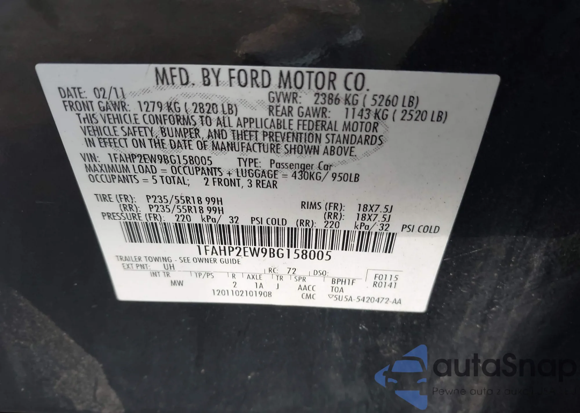 • VIN 1FAHP2EW9BG158005