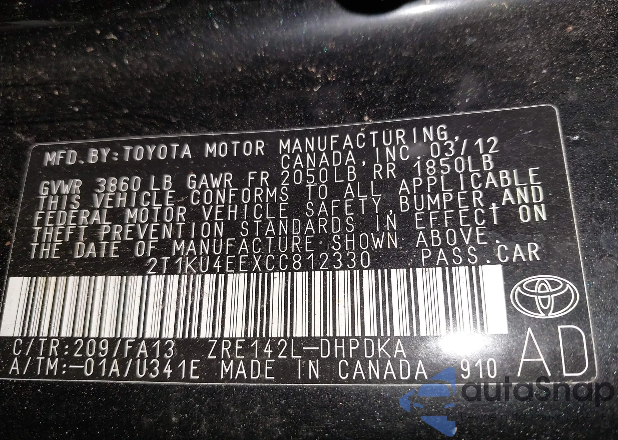• VIN 2T1KU4EEXCC812330
