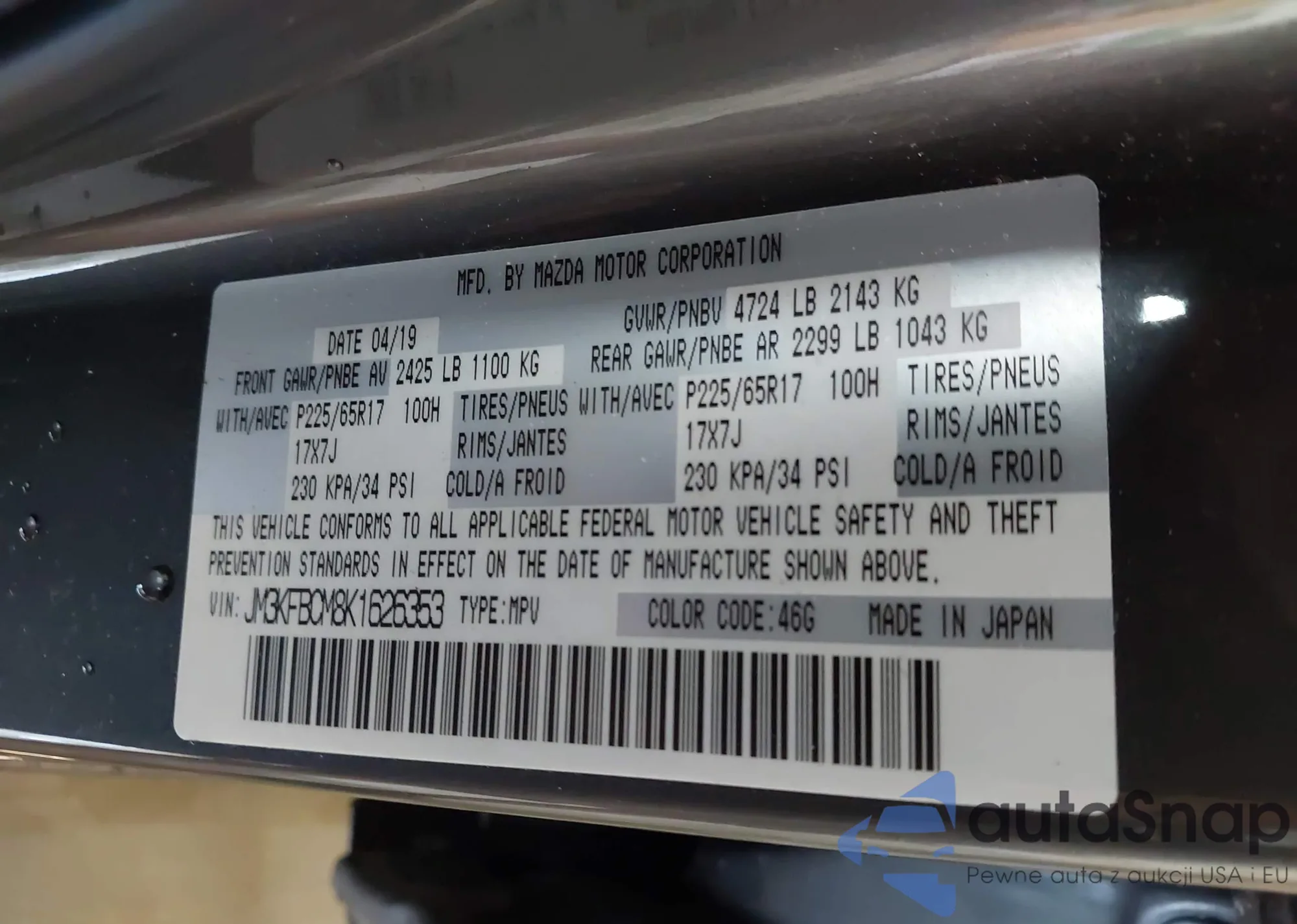 • VIN JA4AD2A38KZ047475